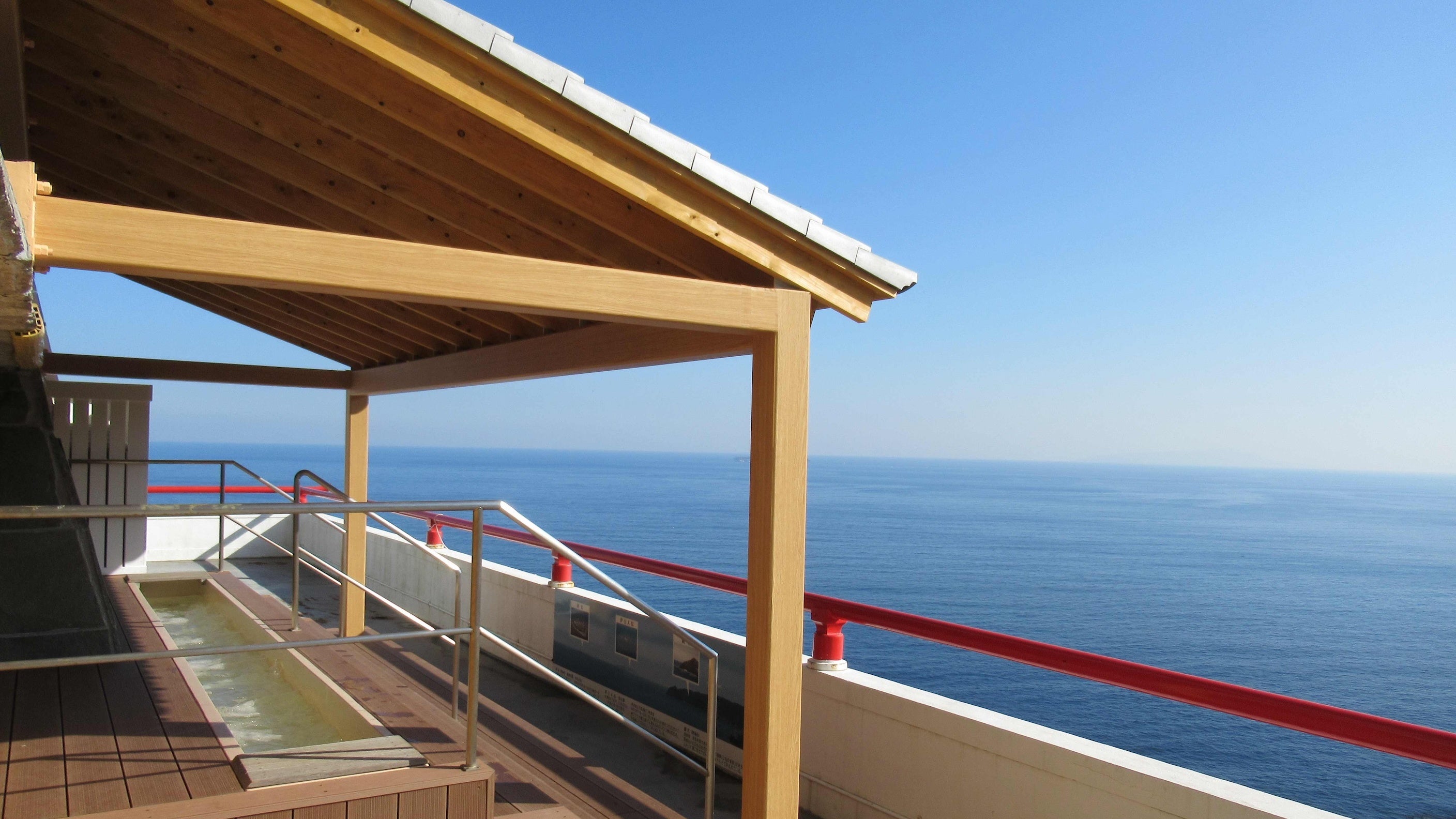 熱海港近くから、八幡山山頂まで一気にのぼるアタミロープウェイ。3分間のショートトリップで、輝く海と大空が広がる「あいじょう岬展望台」に到着します。岬の先端にある「うみそらテラス」では、熱海随一とも言われる絶景パノラマが楽しめます。