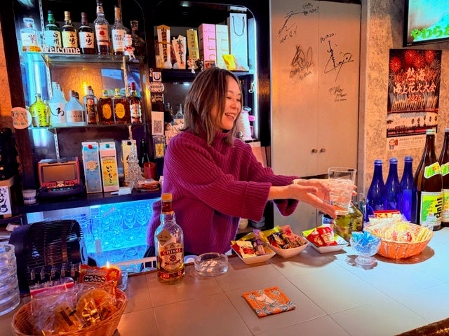 熱海生まれ、熱海育ちのママが一人で切り盛りするスナックで、店名の由来はママの愛称“まーちゃん”から。親しみやすい“まーママ”が迎えてくれ、初めて訪れた人でも自然と会話が弾みます。ママを中心に地元の常連客と観光客が分け隔てなく集い、会話やカラオケを通して店内に一体感が生まれるのも、この店の魅力。熱海のおすすめスポットを気軽に教えてもらえるのも、地元育ちのママならではです。花火大会の後にも立ち寄りやすく、余韻を楽しみながら、気負わず楽しく過ごせる一軒です。