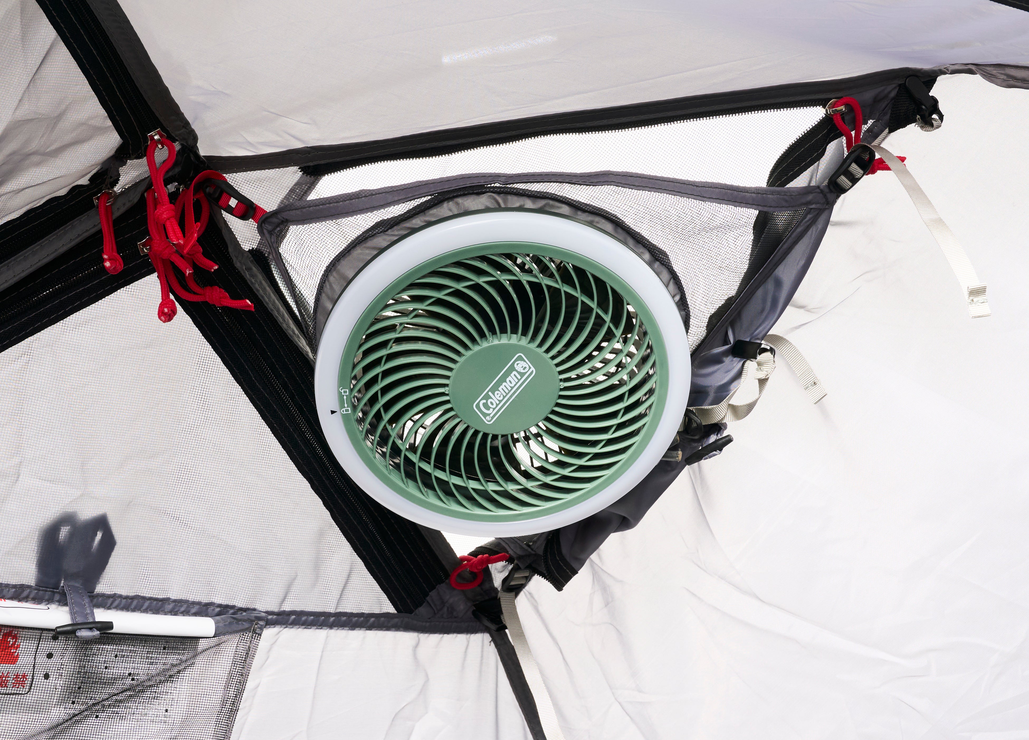 テント内に装着・吊り下げ・卓上 マルチに活躍するライト付きファン