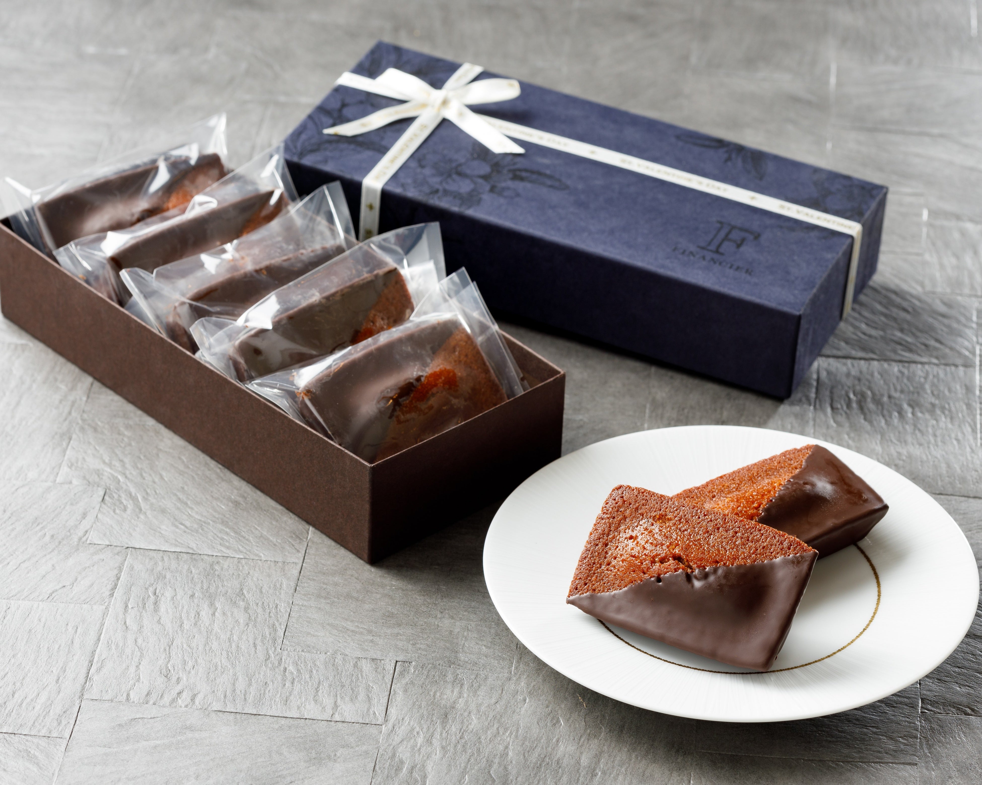 ふっくら、しっとりと焼き上げた濃密な味わいのフィナンシェ。ココア生地のやさしい甘みに
