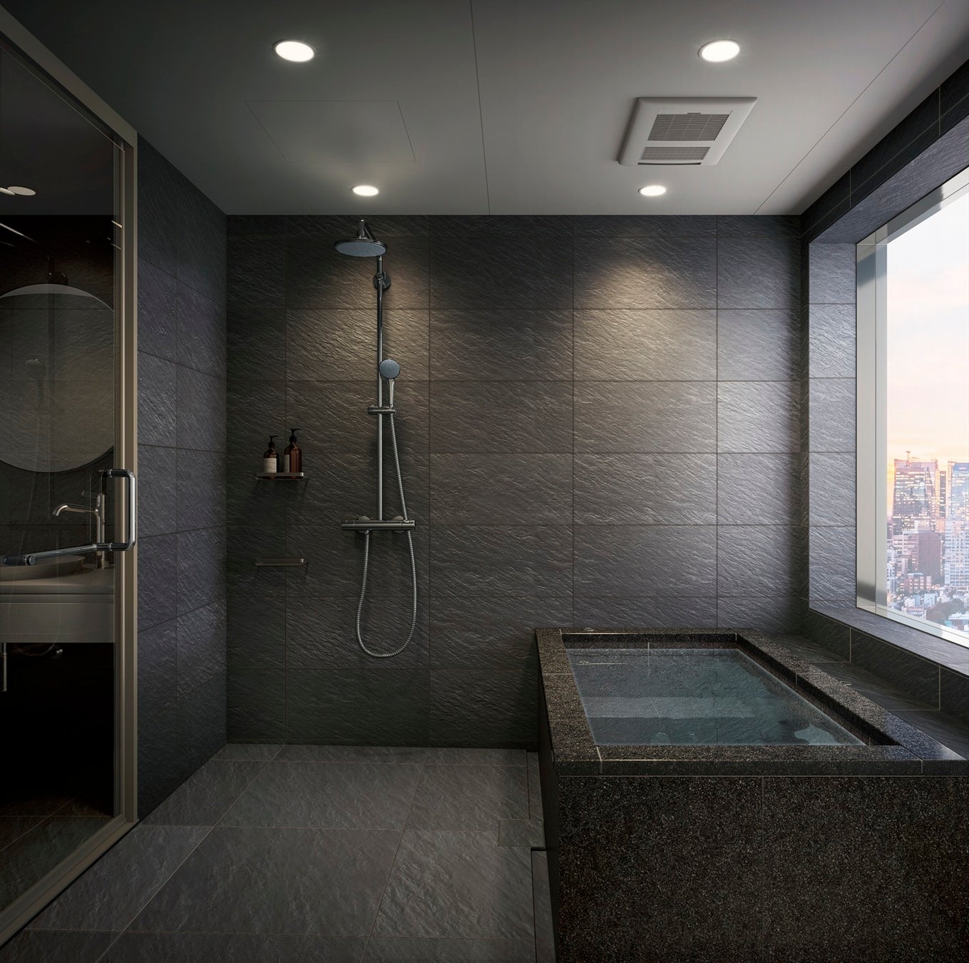また、天井にはマットブラック仕上げを新たに採用。空間全体を引き締め、より上質で落ち着きのある浴室演出を可能にしました。