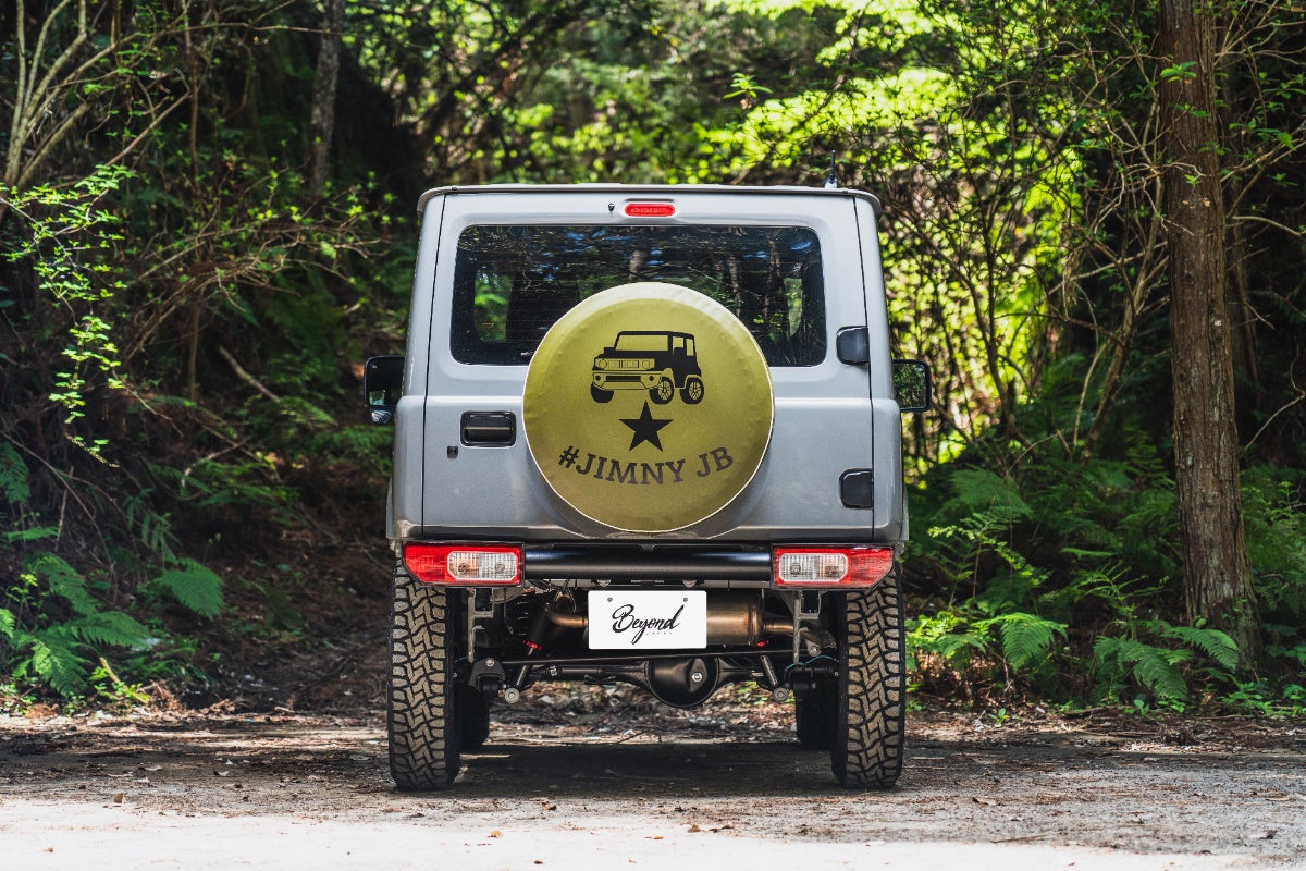さらに、リアまわりにはジムニーのイラストをあしらったスペアタイヤカバーを装着。