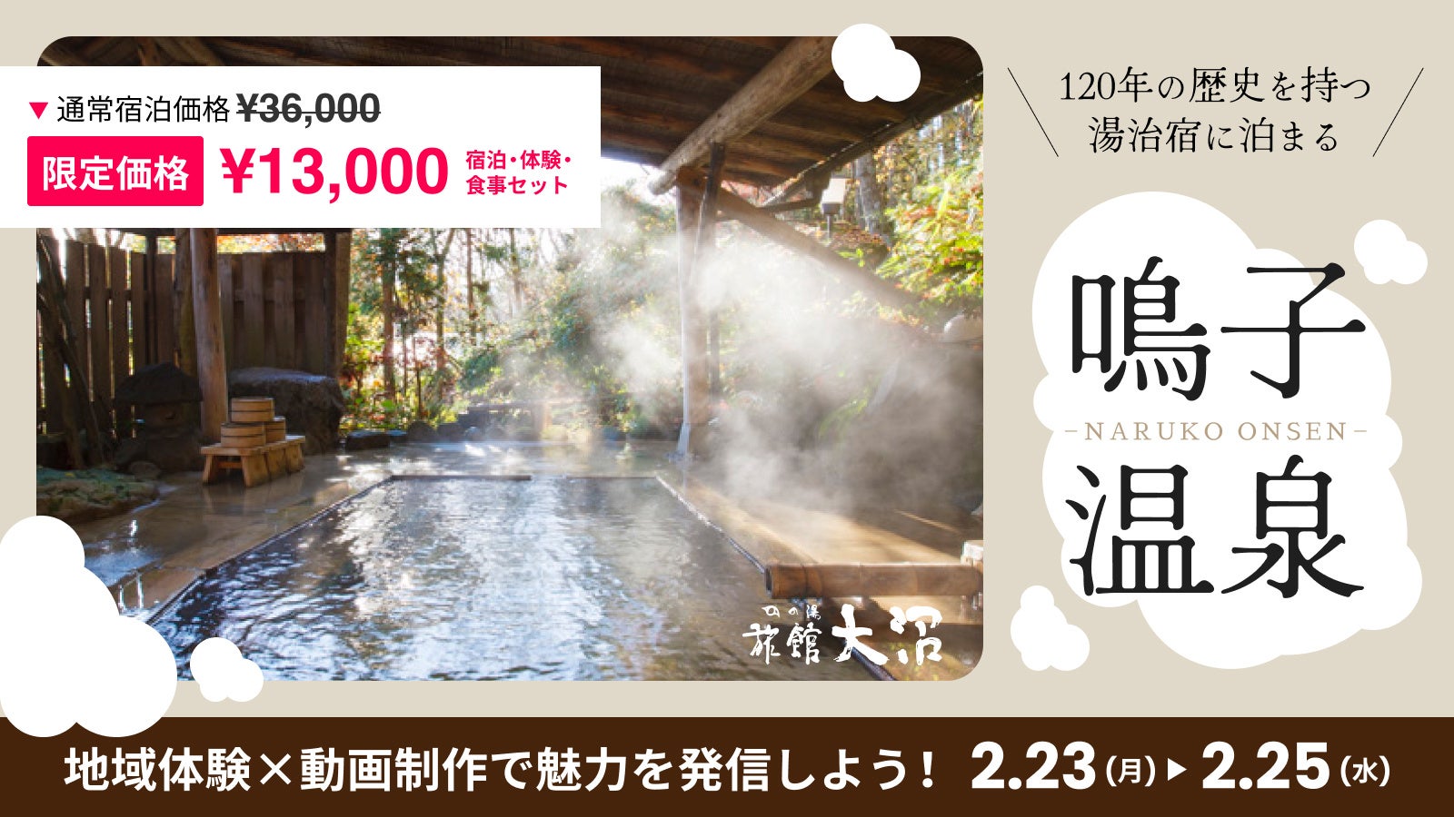 【宮城県大崎市】温泉×動画制作で地域の魅力を発信する2泊3日プログラム