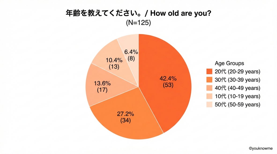 年齢層は、20代(42.4%)、30代(27.2%)となっており、若年層が多いことが分かりました。