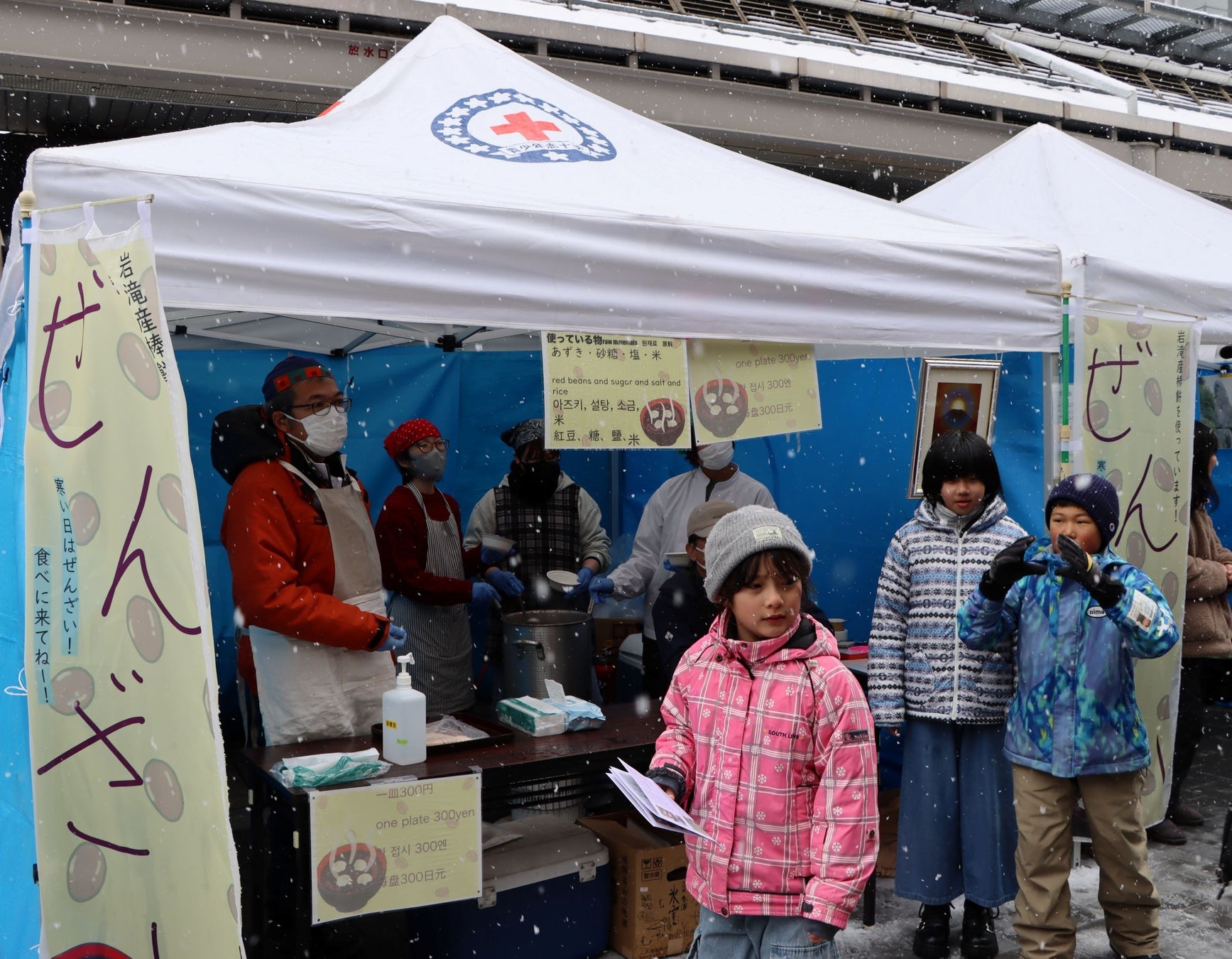 昔から“天候が荒れる”という言い伝えがある通り、当日は大雪警報が発令されていましたが、買い物を楽しむ地元住民や外国人観光客の姿が見られました。市観光課によると、約40,000人の人出となりました。