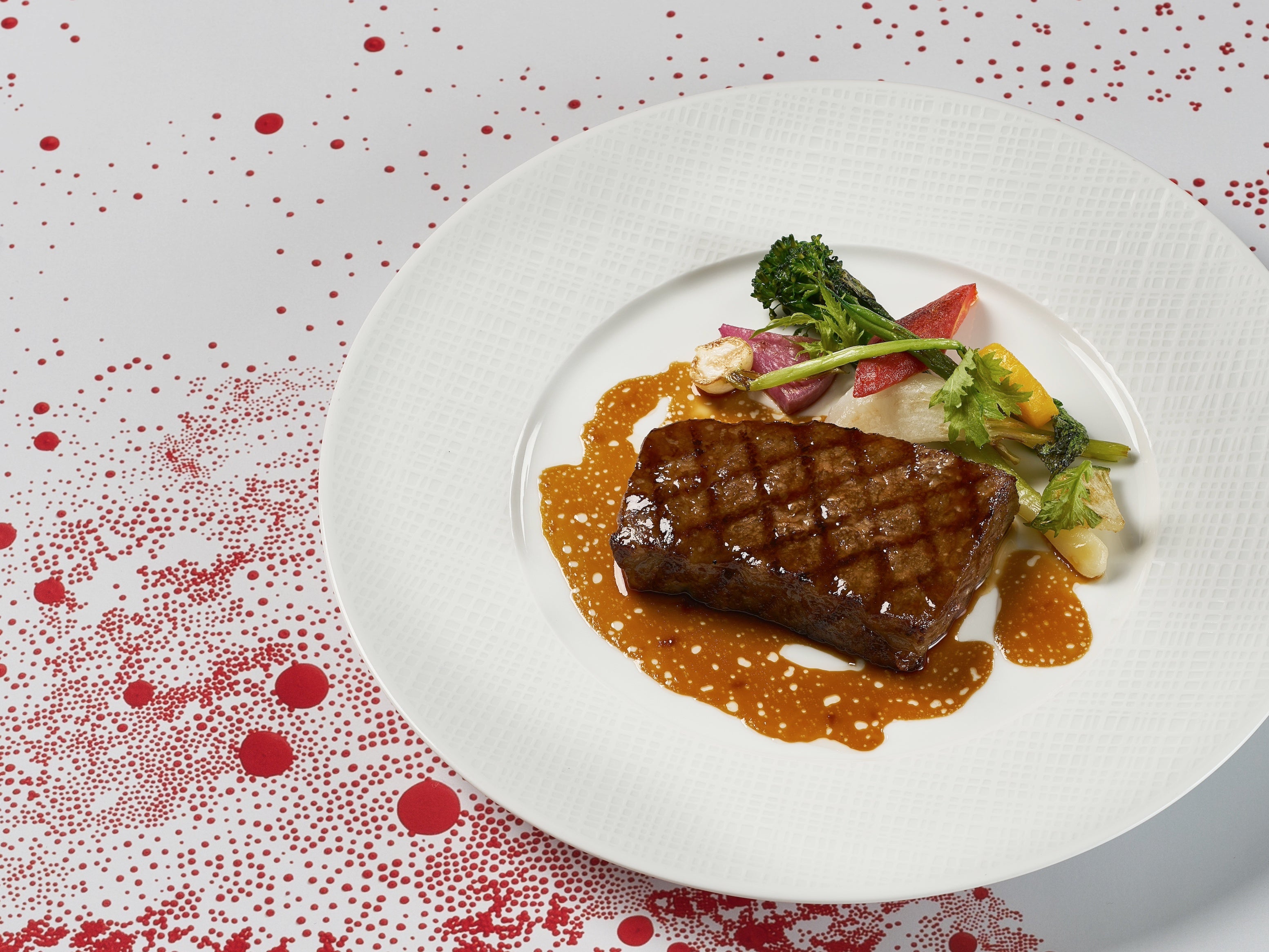 – 黒毛和牛フィレ肉のグリルと野菜のロティを添えてペリグーソースで