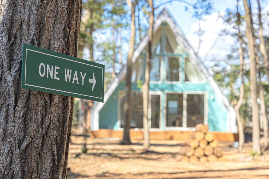 木々に囲まれたグランピングコテージは三角屋根の開放的な室内スペースにハワイアンテイストのインテリアを施し、まるで海外にいるかのような非日常空間。