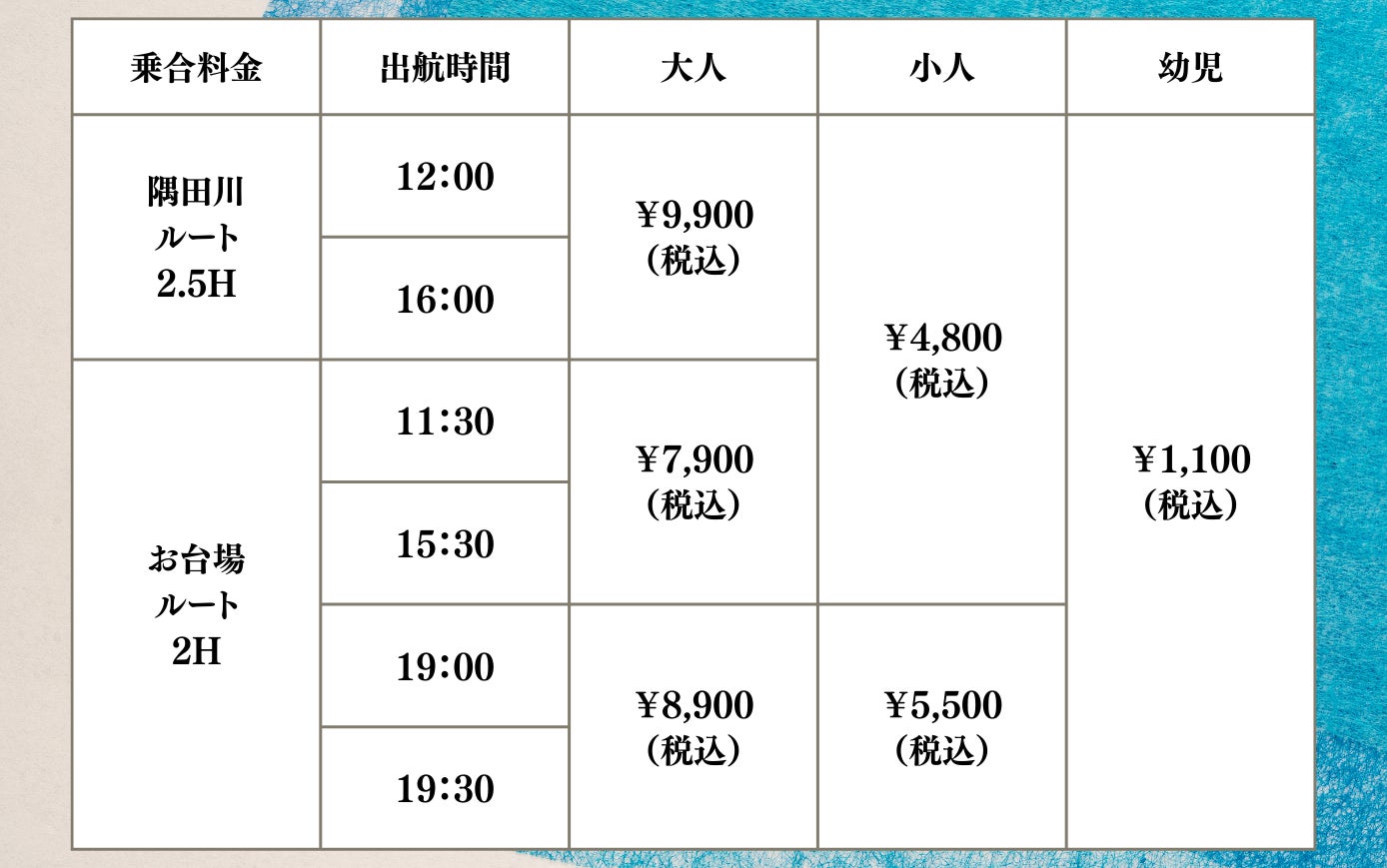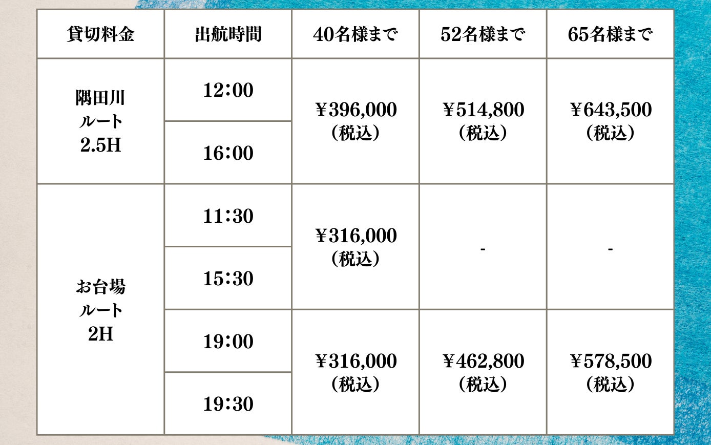 新木場 ⇔ 隅田川周遊(2.5時間)