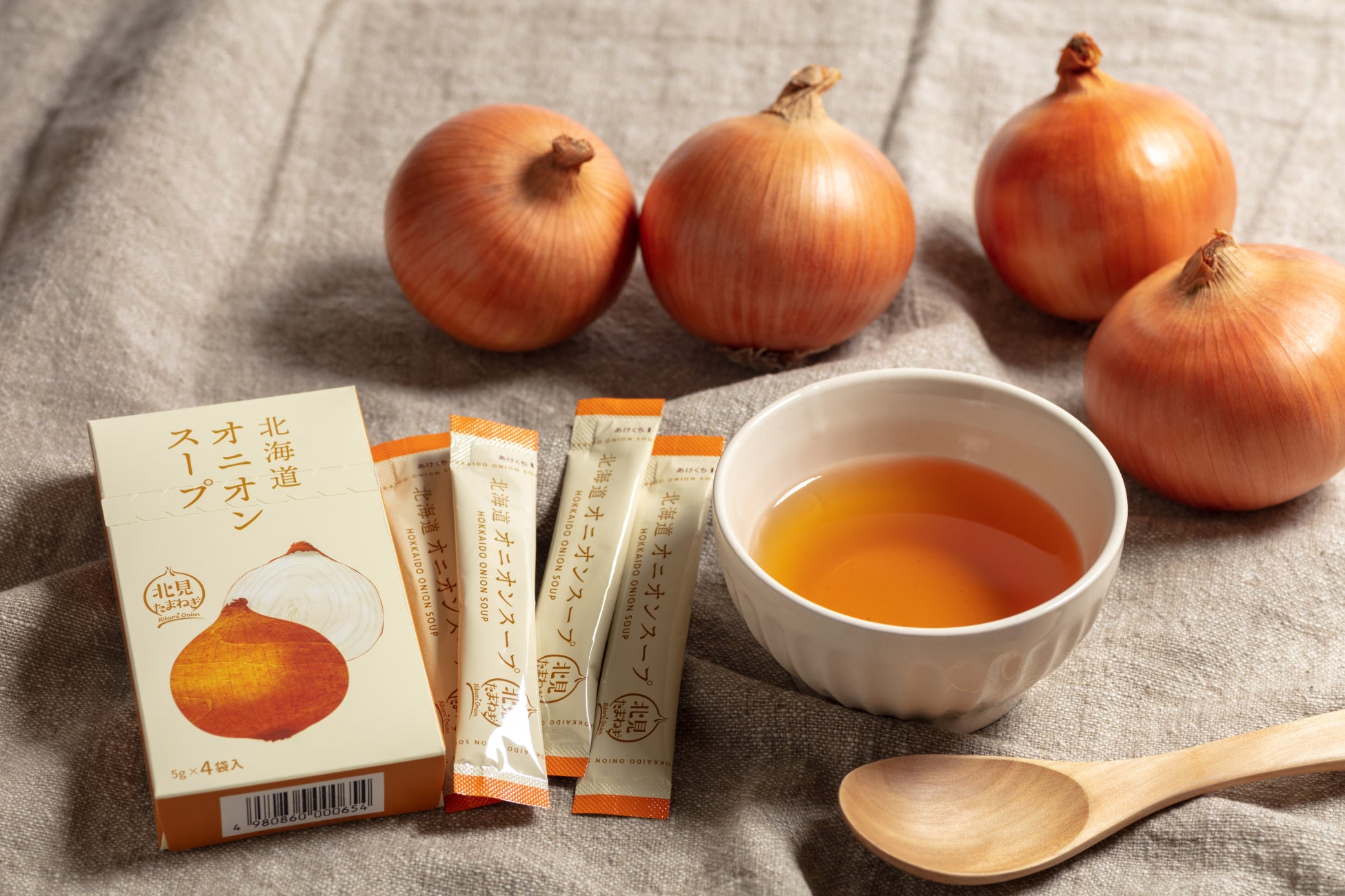 提供するスープは、生産量日本一を誇る北見たまねぎを使用した「北海道オニオンスープ」と、北海道産のほたてを使用した「北海道ほたてスープ」の2種類で、どちらのスープも北見市に本社を構える加工食品メーカー、株式会社グリーンズ北見の人気商品です。