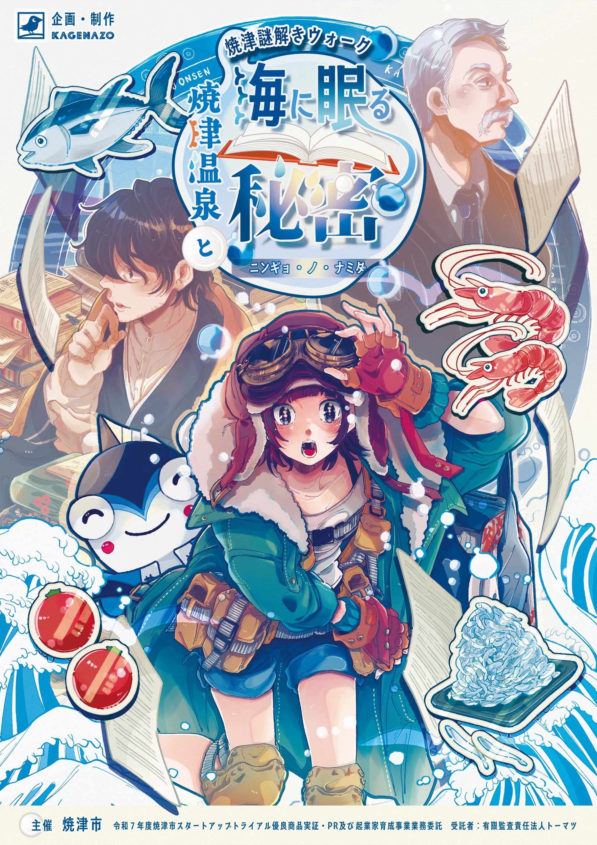 「謎解き×地域活性」で話題の謎解きクリエイティブチーム『KAGENAZO』が焼津温泉の魅力を発信するための街歩き×謎解きイベント『【焼津謎解きウォーク】焼津温泉と海に眠る秘密〜ニンギョ・ノ・ナミダ〜』を、静岡県の焼津市を舞台に2026年2月3日(火)から開催いたします。