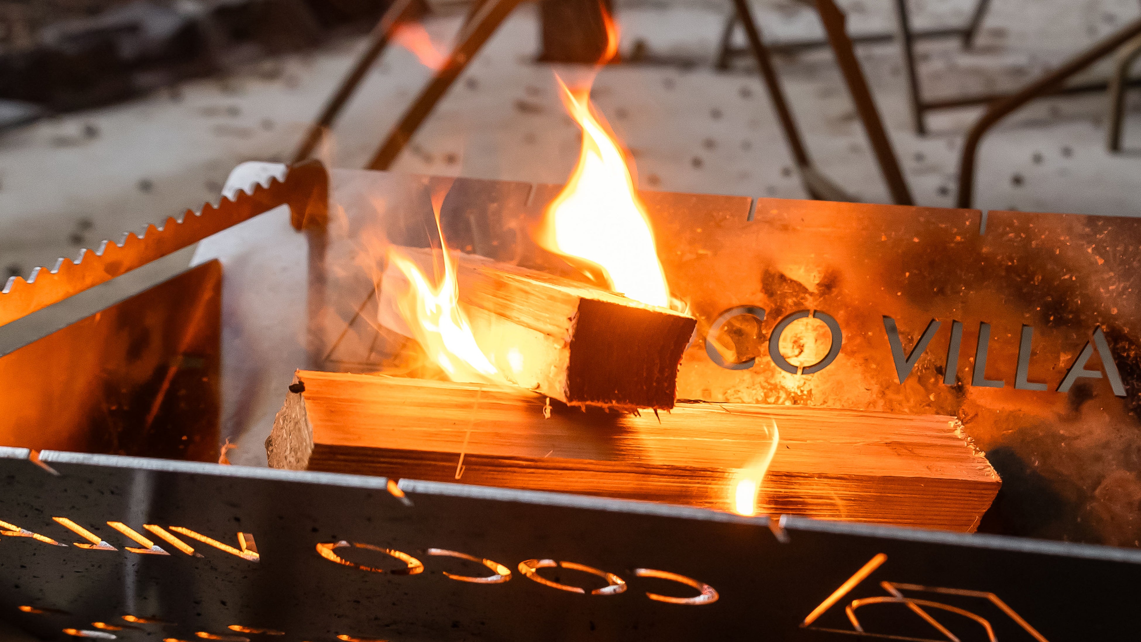 サウナ後にクールダウンした肌を、ほんのりと温める焚き火。