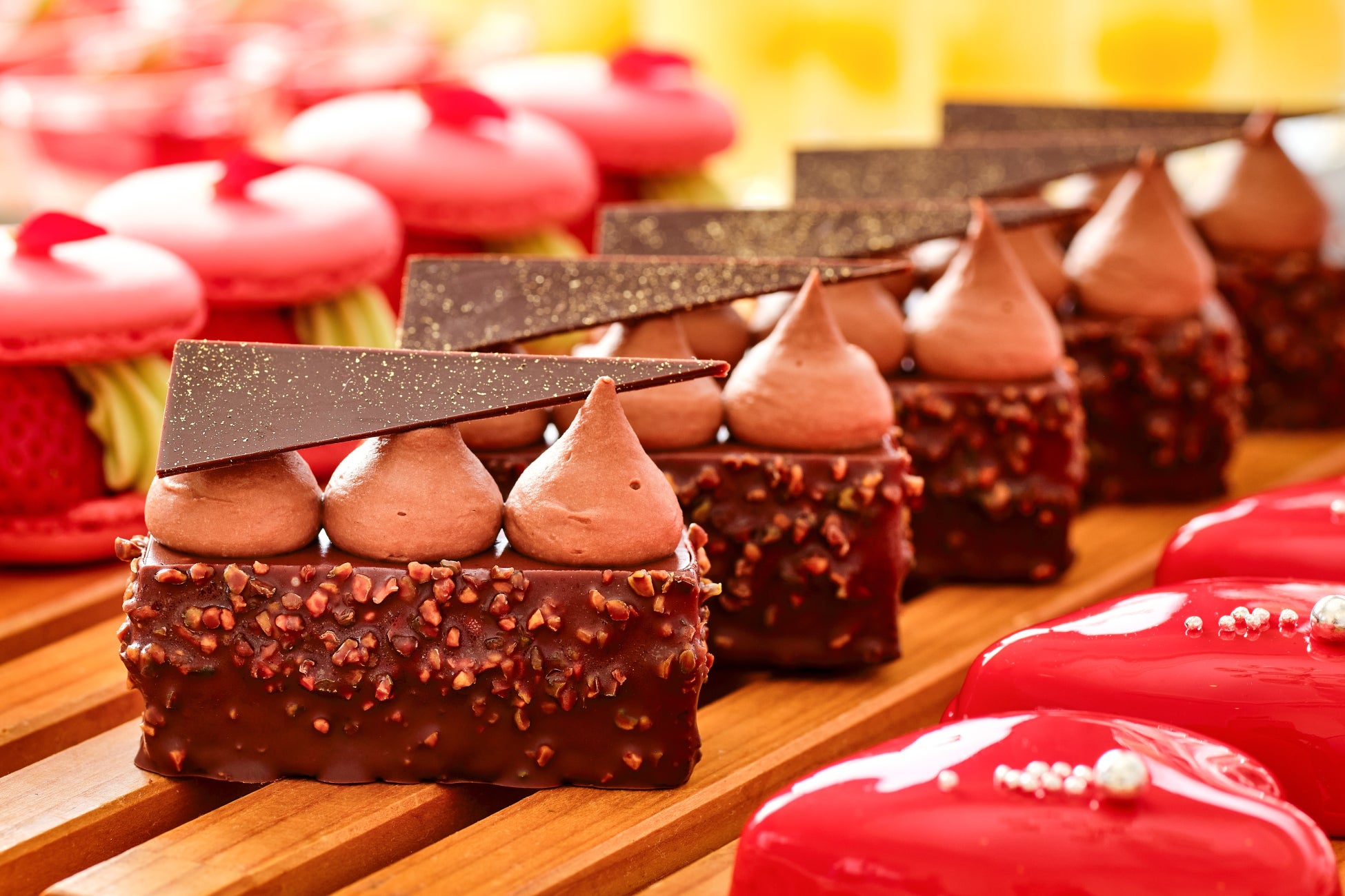 さらに、香ばしいピスタチオのコクと甘酸っぱい苺が絶妙に調和したマカロンピスターシュなど、バレンタインを彩るスイーツが並びます。