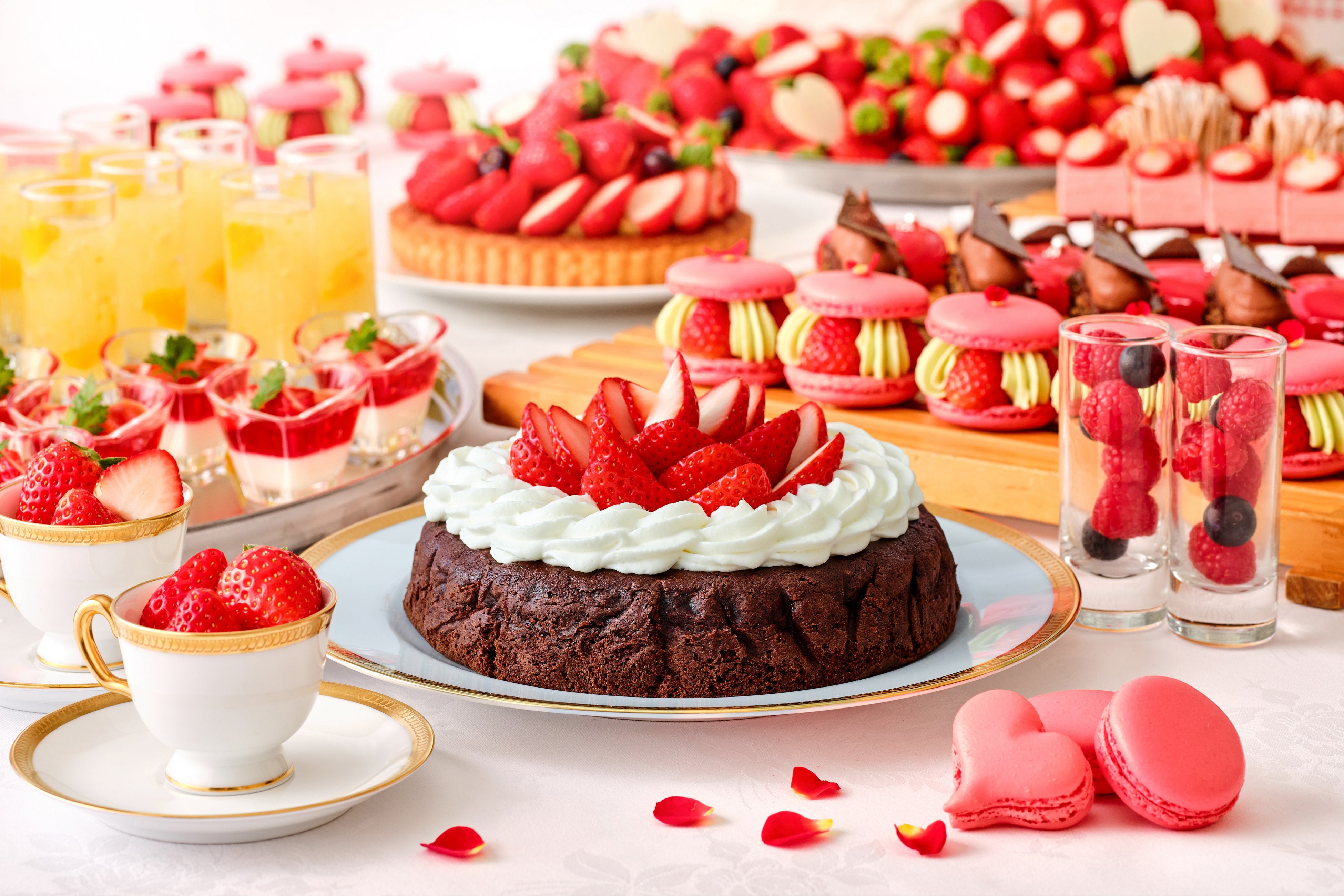 バレンタインらしい華やかで甘美な世界観の中、苺をふんだんに使用したスイーツや、濃厚なチョコレートスイーツを中心に、見た目も味わいも心ときめくラインアップが登場します。