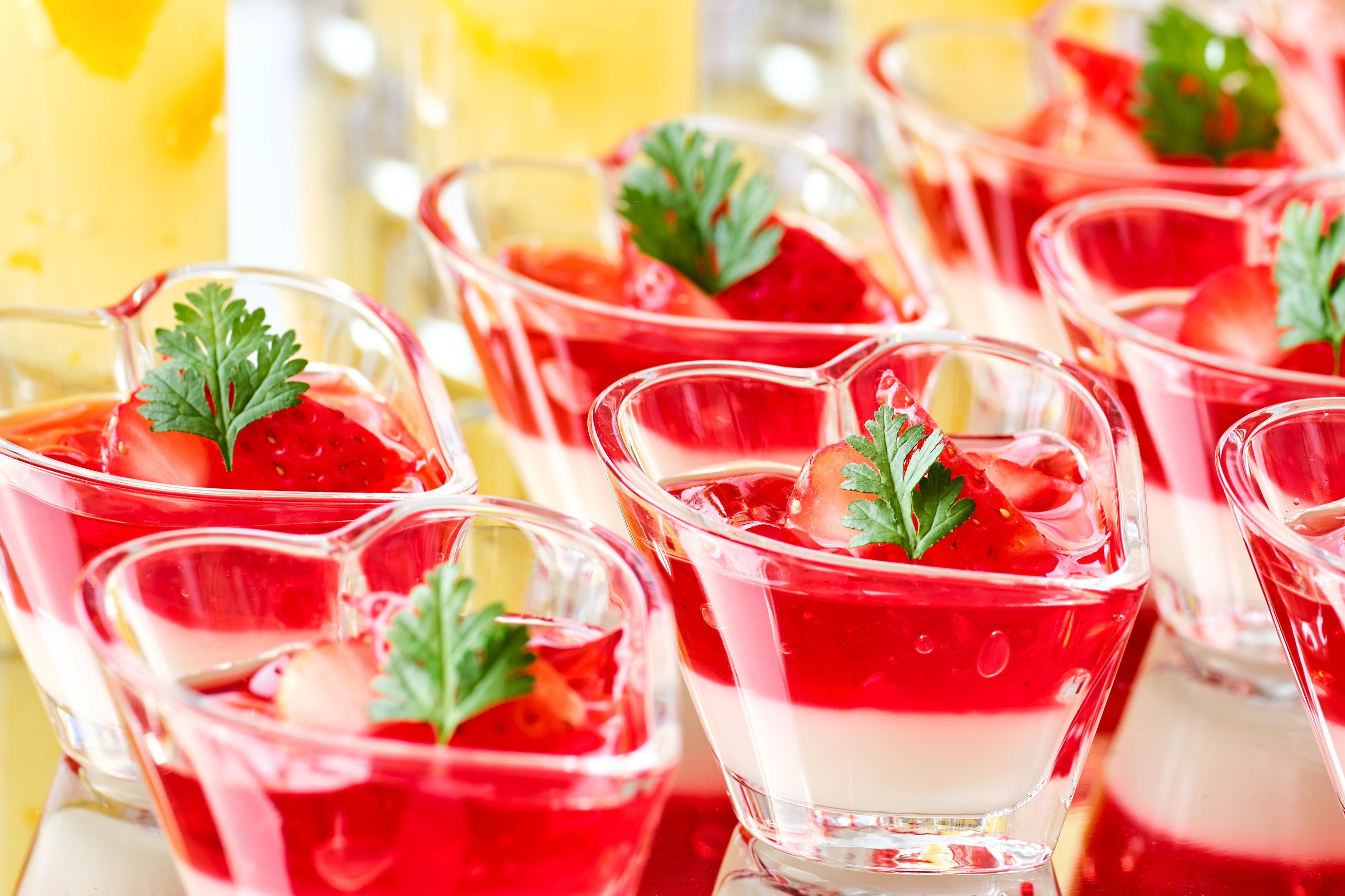 真っ赤に色づいた苺を贅沢にあしらったタルトをはじめ、しっとりと焼き上げた濃厚なガトーショコラ、口に運ぶとやさしくほどけるような食感が魅力の苺のブランマンジェをご用意。
