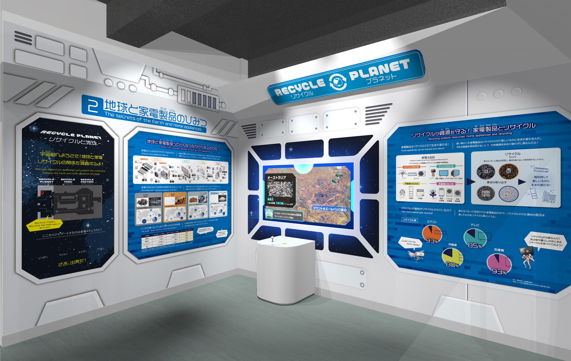 リニューアルによって生まれ変わった新たな啓発ブースは家電リサイクルが環境負荷を減らし、持続可能な社会を築くための一歩であることを楽しみながら学べる空間になっています。