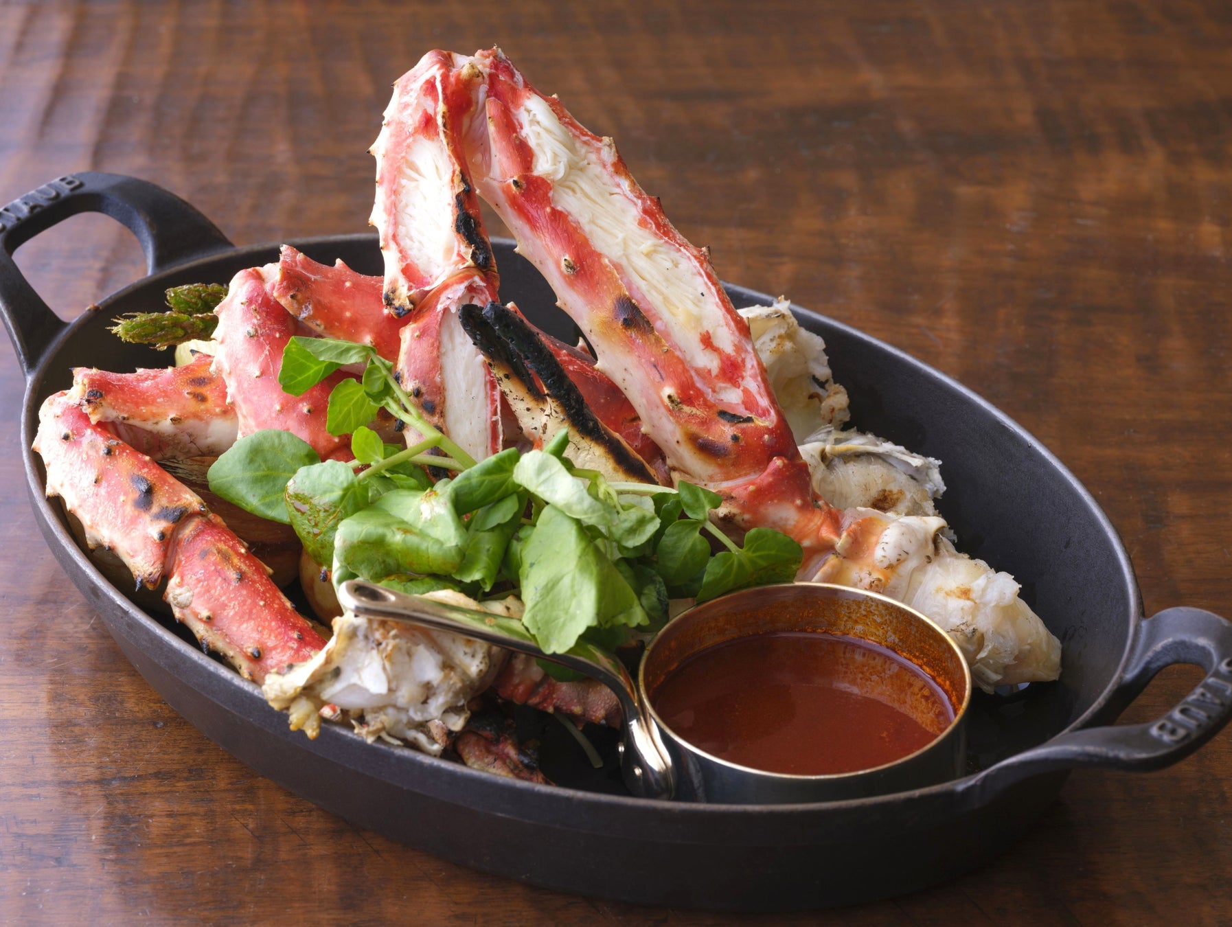食べ応えのあるタラバガニを豪快にグリルし、蟹の旨みを凝縮したアメリケーヌソースを合わせました。