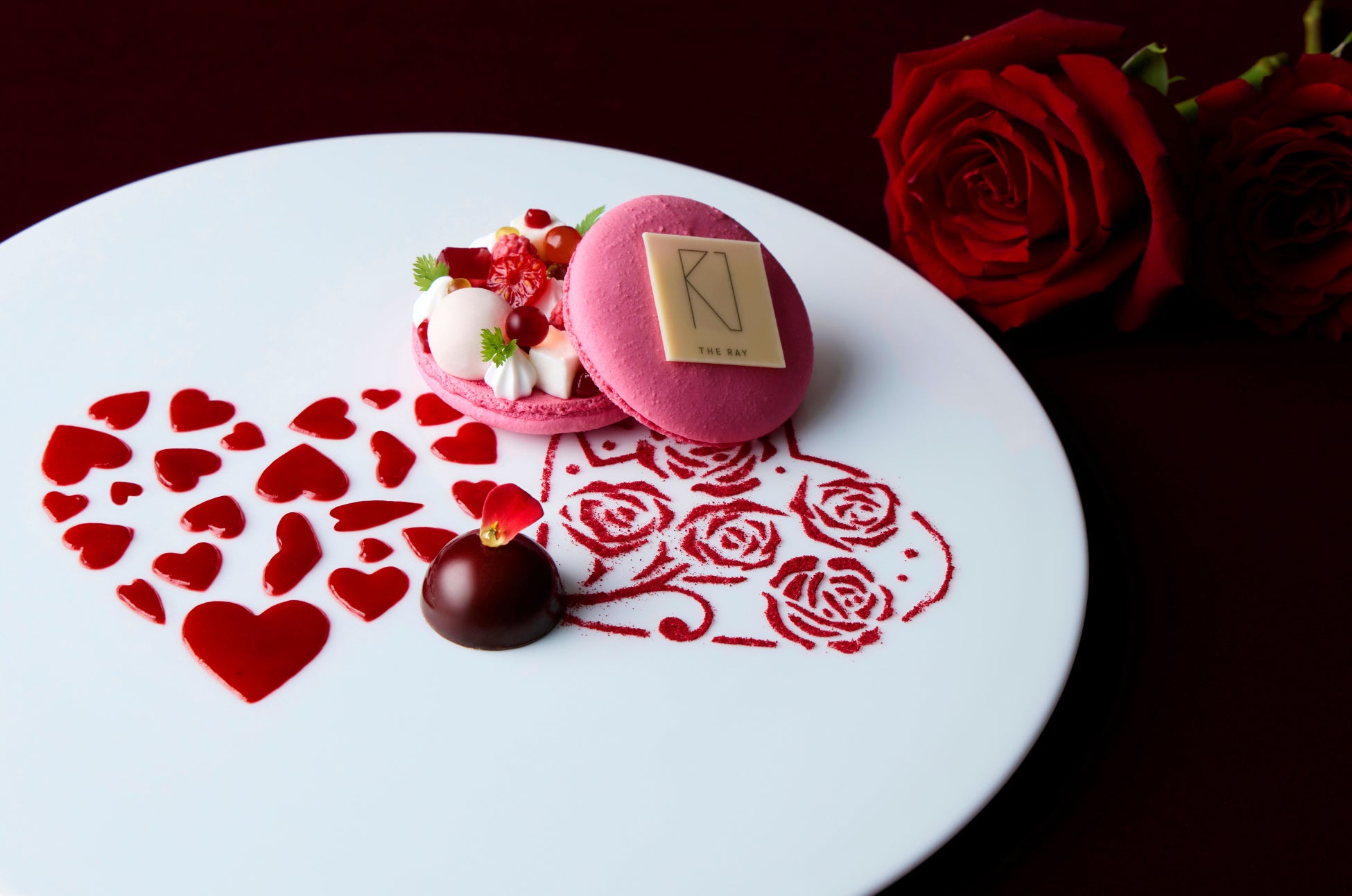 愛のシンボル、薔薇とハートを描いたバレンタイン限定デザート