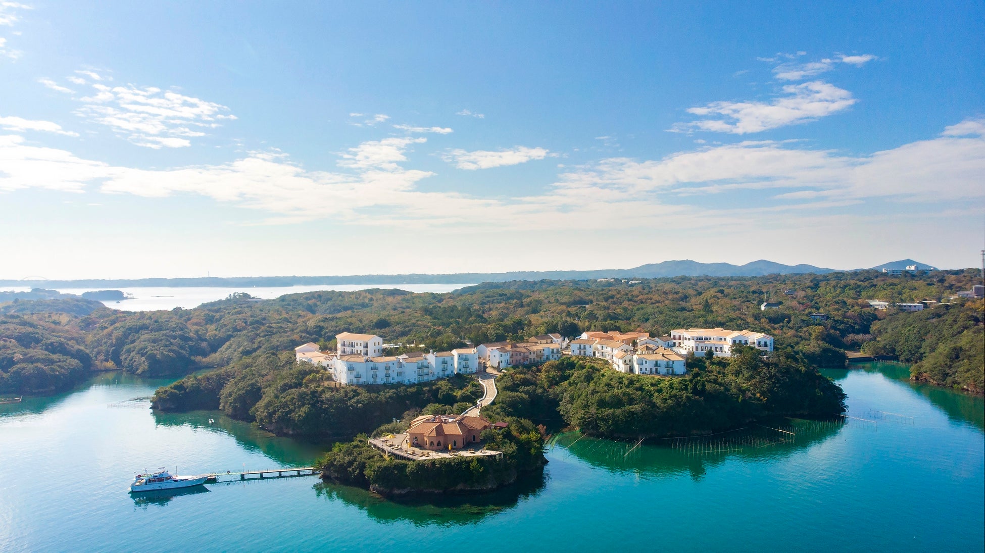 三重県の志摩半島の豊かな自然の中に建つリゾート宿泊施設です。英虞湾の青い海と白い街並みのフォトジェニックな、広い敷地の村内にある建物一つ一つがホテルの客室になっております。客室のほか、アルハンブラ宮殿をイメージした天然温泉、伊勢志摩の食材を使った新バスク料理を楽しめるレストラン、英虞湾を満喫できるクルージングなど、非日常感たっぷりのリゾート気分を堪能していただけます。