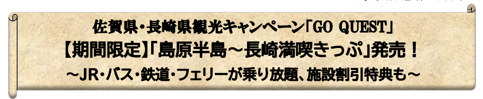 九州旅客鉄道株式会社では、2026年3月31日までの期間で、わくわくが詰まった佐賀県・長崎県観光キャンペーン「GO QUEST」を開催中です!