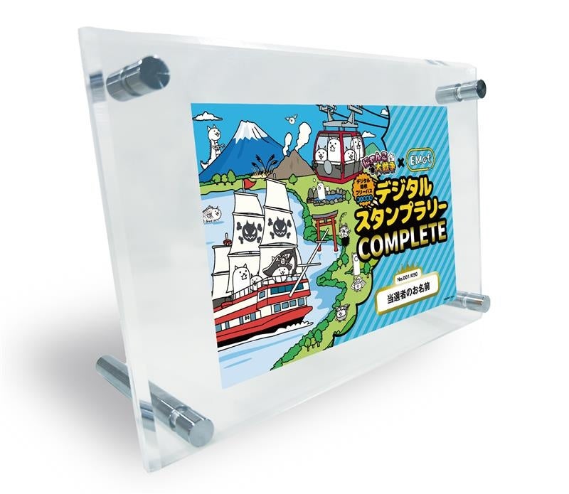 本イベント期間中は、交通結節点となる駅や観光スポット合計5箇所に、本企画オリジナルビジュアルの「にゃんこパネル」を設置します。ここに記載の二次元コードを、電子チケットにあるスタンプ台紙画面から読み取ることでスタンプを獲得いただけます。全5スポットを制覇いただいた方全員にオリジナルデザイン「スマートフォン壁紙」をご用意し、さらにお申し込みいただいた方から抽選で50名に、名入れされた「達成記念アクリルパネル」をプレゼントします。
