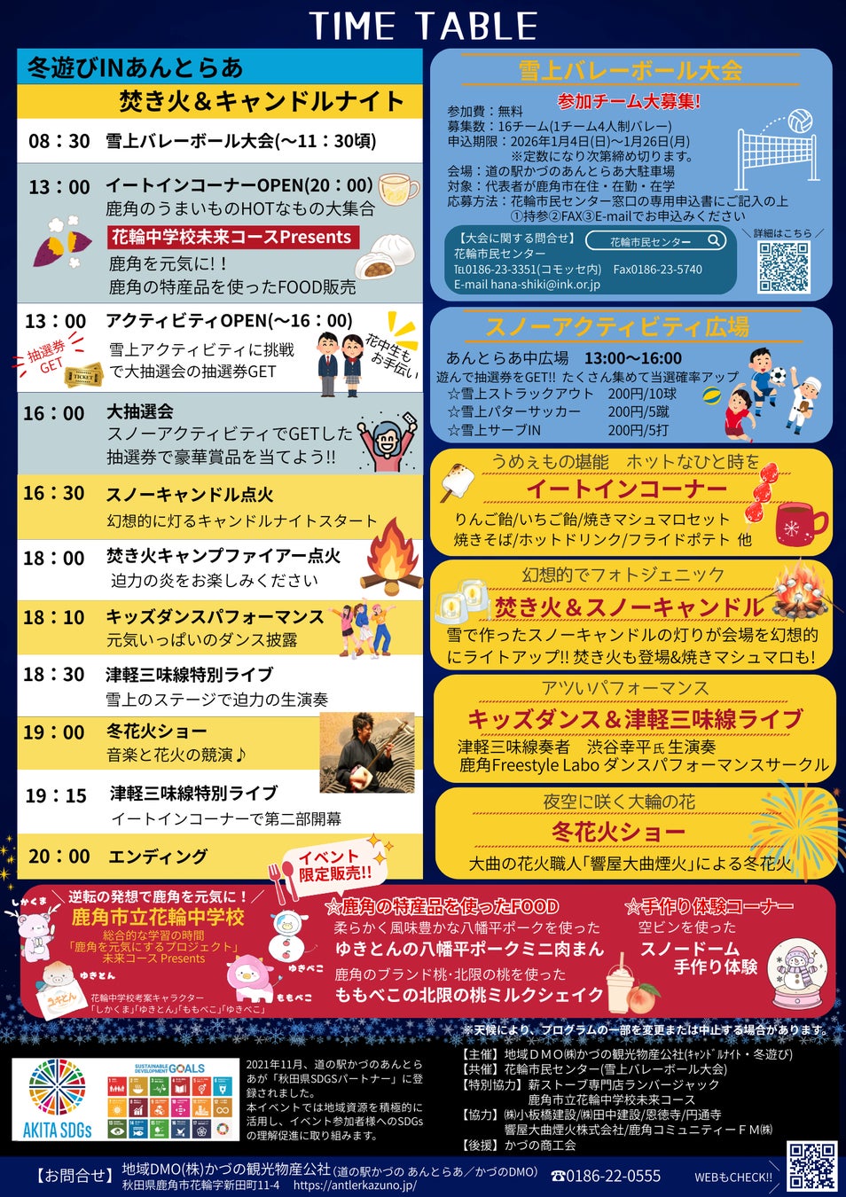 本イベントは、これまで地域の冬の恒例行事として開催してきた取り組みで、本年は新たな試みとして、鹿角市立花輪中学校の総合的な学習の時間「鹿角を元気にするプロジェクト(未来コース)」に取り組む生徒たちと連携し、イベントの一部企画や情報発信を行います。