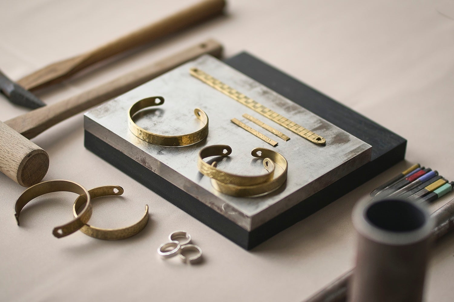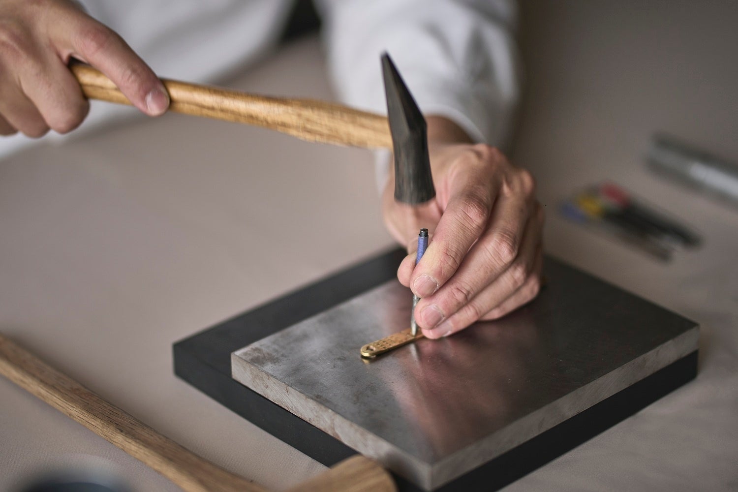 真鍮素材を用いた彫金・槌目加工を体験し、経年変化も楽しめる