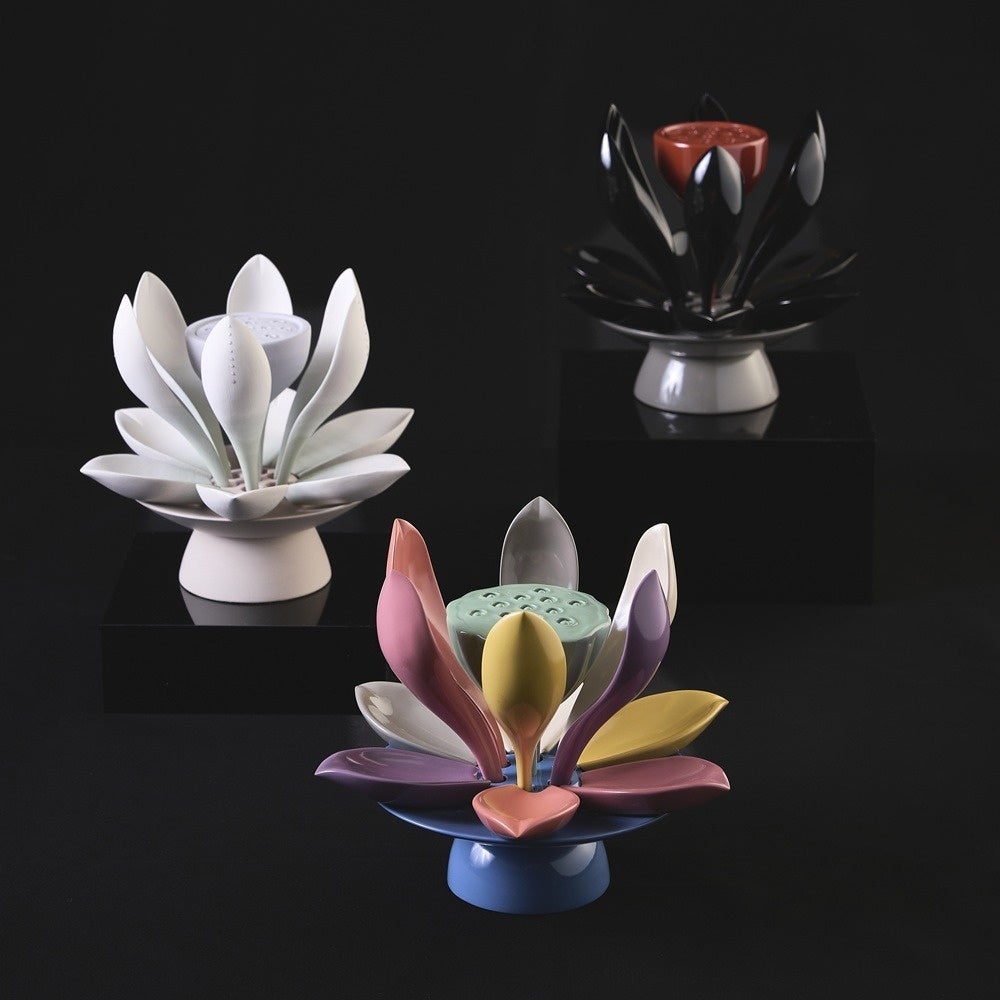 代表作である「Blossom」シリーズは、生命の循環や祈りといった普遍的なテーマを背景に、仏具に通じる造形思想と現代的なフォルムを融合させた象徴的な作品群です。工芸を鑑賞の対象としてではなく、空間を整え、日常に静かに寄り添う存在として位置づけています。展示やワークショップを通じて、伝統の継承と革新が共存する可能性を国内外に発信し、工芸が今を生きる私たちの暮らしの中でどのように息づくのかを問い続けています。