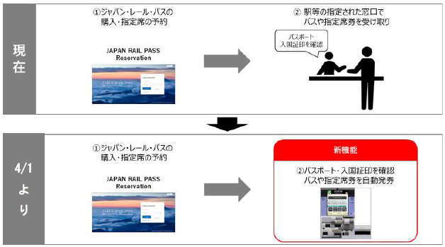 「指定席券売機が便利になります!~新型機を導入!従来機も画面更新・機能拡充により更に便利・快適に!~」(2025年7月3日発表 プレスリリース)にてお知らせをした、Web予約したジャパン・レール・パスの指定席券売機での引換について、2026年4月1日(水)より、一部のパスポートリーダ付指定席券売機で引換が可能になります。