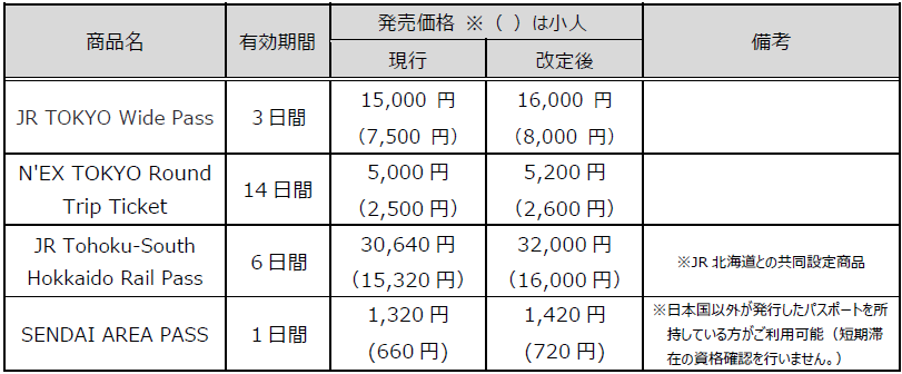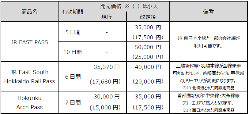 ※「JR EAST PASS(Tohoku area)」「JR EAST PASS(Nagano, Niigata area)」は2026年3月13日(金)を持ちまして販売終了となります。