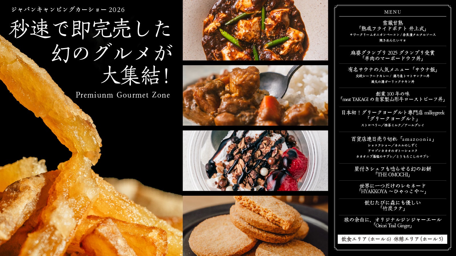 物語形式のグルメゾーンを監修するmaison tale.によるジャパンキャンピングカーショー限定のPOP UP、 各地の名店や話題の人気店が集結する「プレミアムグルメゾーン」です。