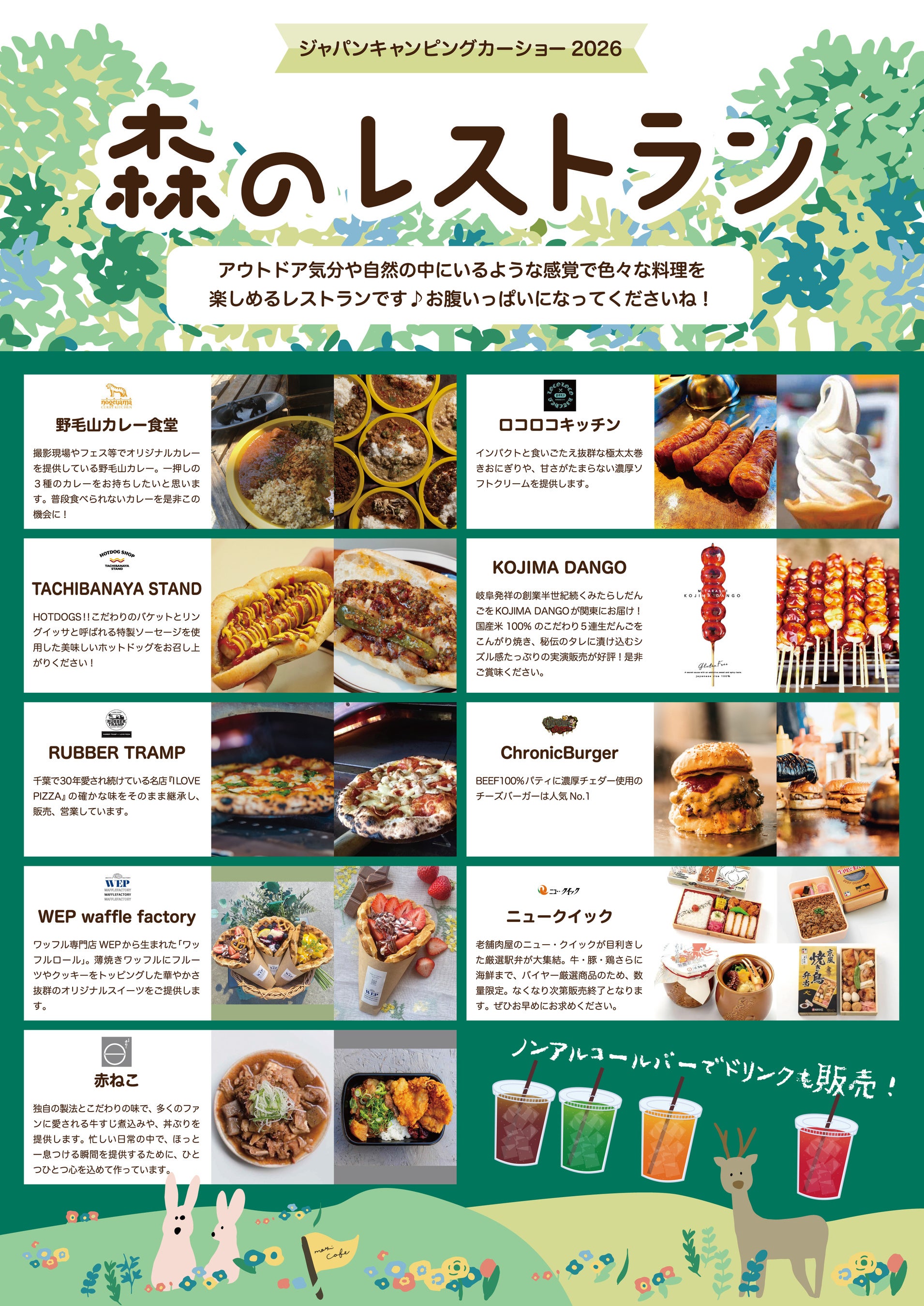 キャンピングカーだけじゃない!森のレストラン&プレミアムグルメゾーンで“食”も満喫!