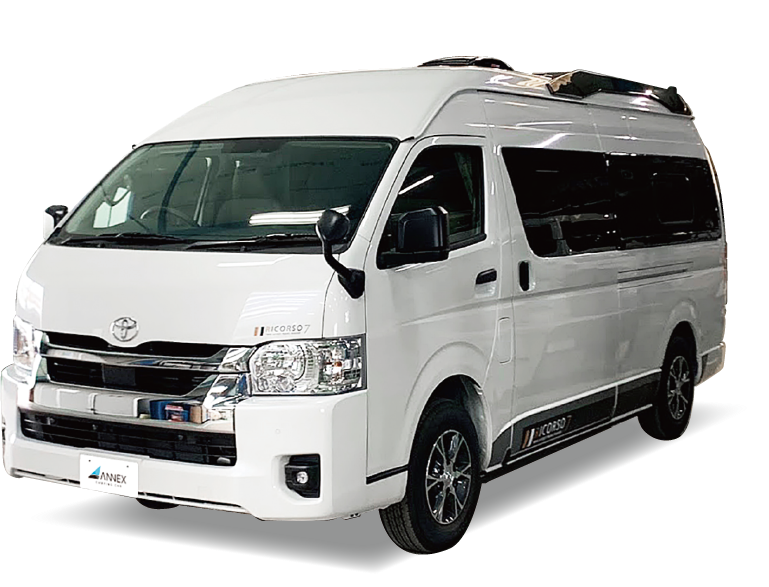 ハイエース・スーパーロングをベースに、独立型マルチルームを新設 。500Ahの大容量リチウム電池により、ホームエアコンを静かに長時間稼働させることが可能です 。都会的で洗練された漆黒の内装「BLACK LINE」も選べ 、究極のゆとりで「大人の二人旅」を格上げする、会場で必見のフラッグシップモデルです 。