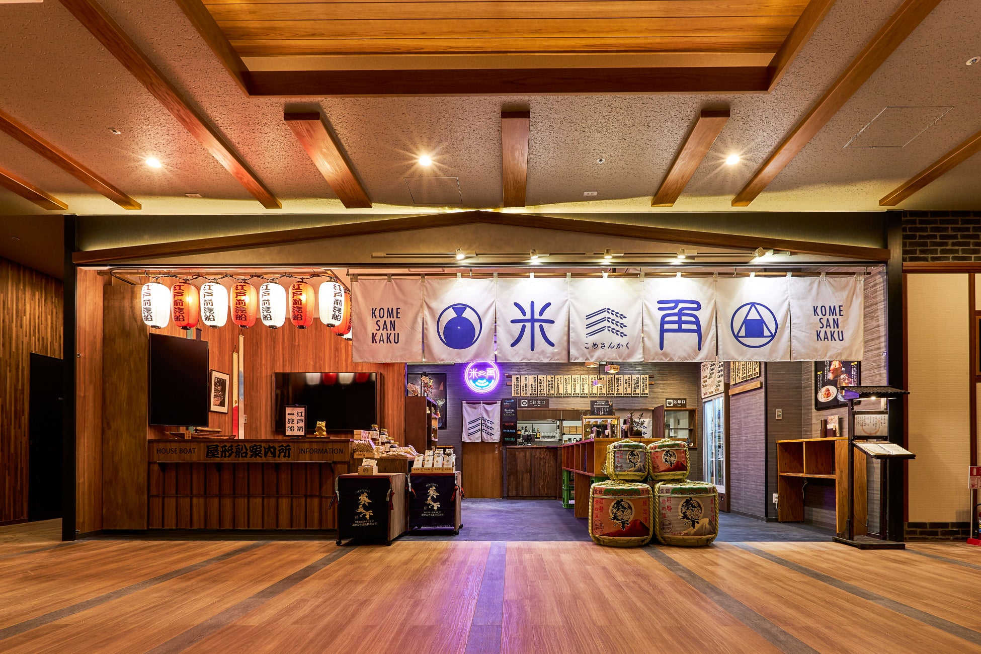 SAKEペアリング酒場「⽶三⾓」は、東京の新しい食のテーマパーク千客万来内でも比較的リーズナブルに海鮮・くずし割烹料理・⽇本酒などが楽しめるお店です。