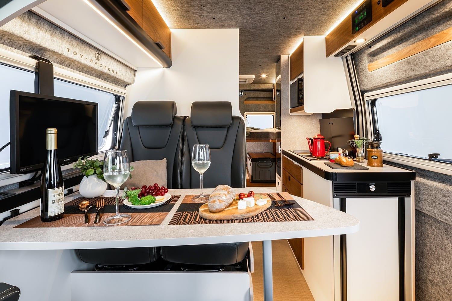 全長6mのゆとりあるフィアット・デュカトL3H2をベースに、“贅沢な大人2名の旅時間”をテーマに創り上げた、充実装備のフラッグシップモデル「DA VINCI(ダヴィンチ)6.0」。