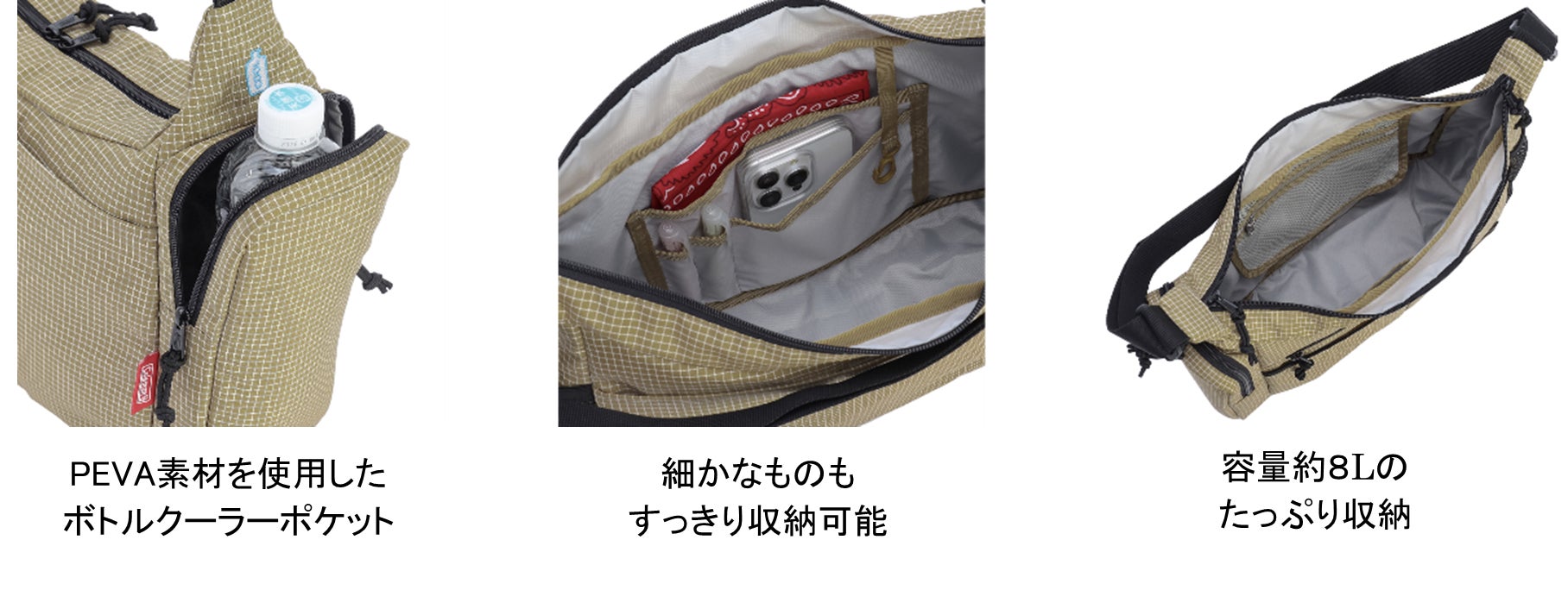 近場のお出掛けに最適なボトルクーラーポケット付きショルダーバッグ