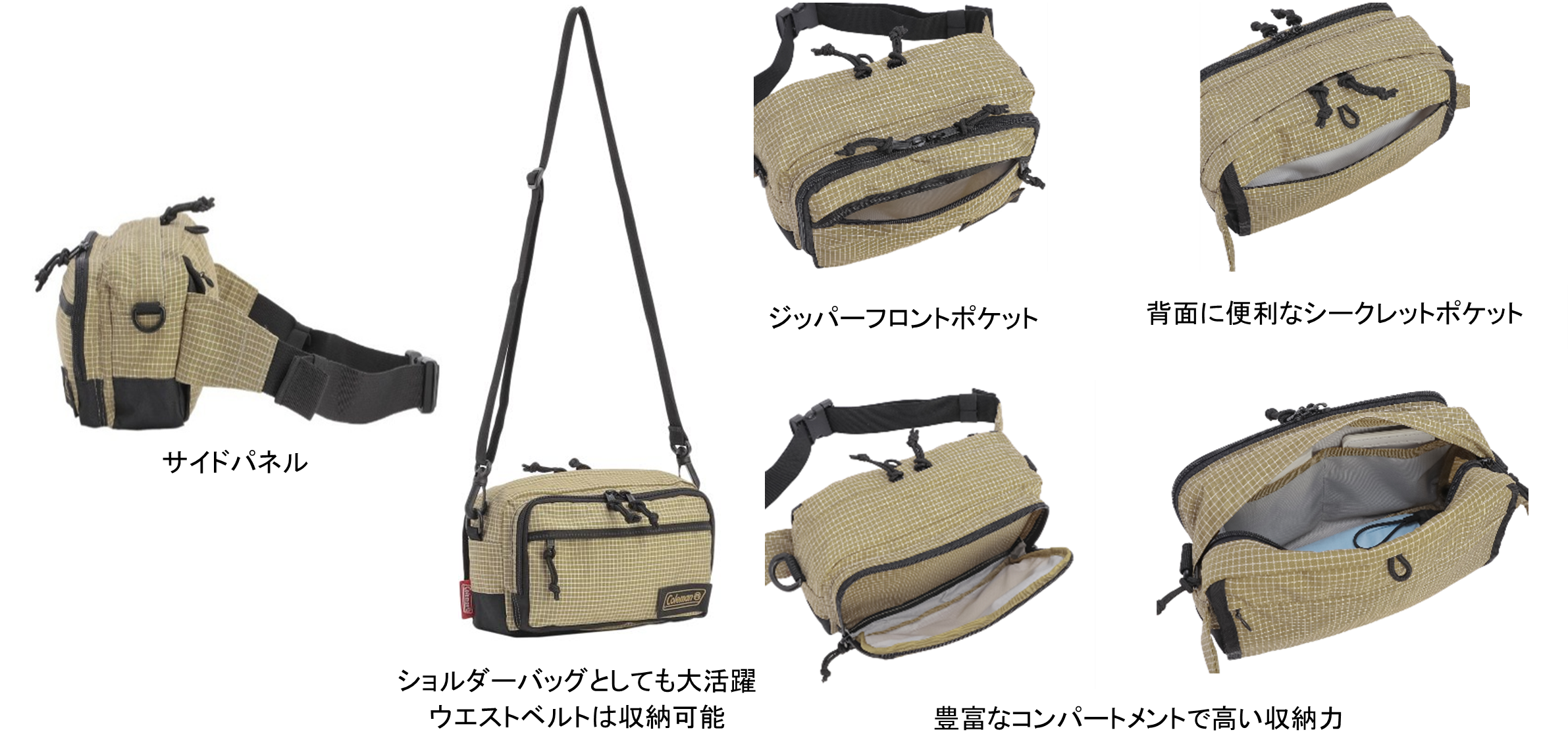 豊富なポケットの2WAYショルダーウエストバッグ