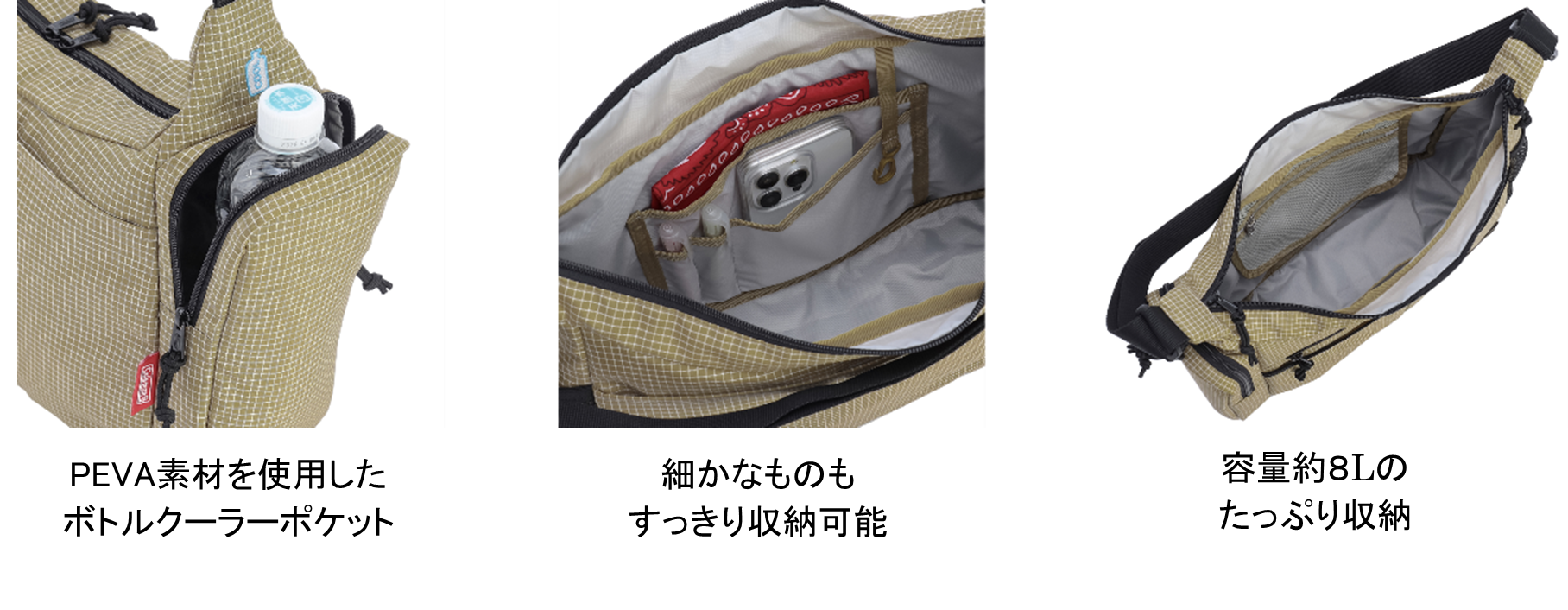 近場のお出掛けに最適なボトルクーラーポケット付きショルダーバッグ
