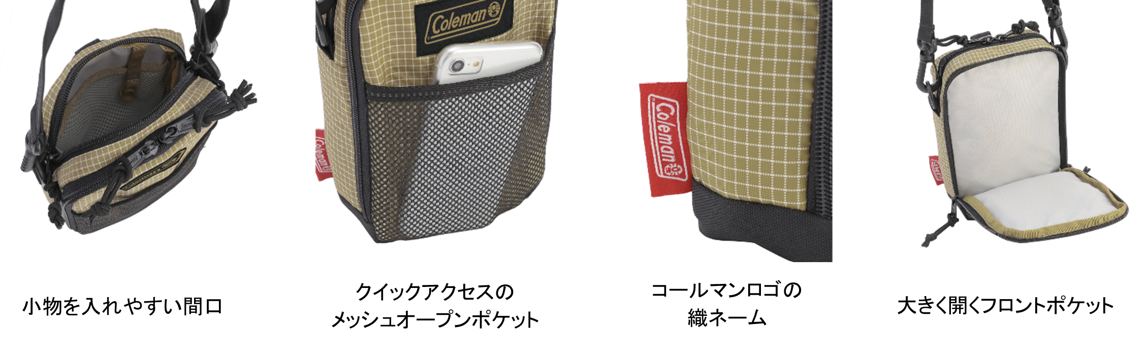 「ウォーカーポーチS」は、コンパクトでありながら豊富なポケットを備えており、セカンドバッグとして便利に使えるスクエア型ショルダーポーチです。フロントポケットがフルオープンに大きく開くので、とても使いやすい仕様になっています。また、クイックアクセス可能なメッシュのオープンポケットも付いており、スマホなどを入れておくのにとても便利です。ショルダーベルトの代わりにカラビナを使うことで、さまざまな場所に付けることもできます。