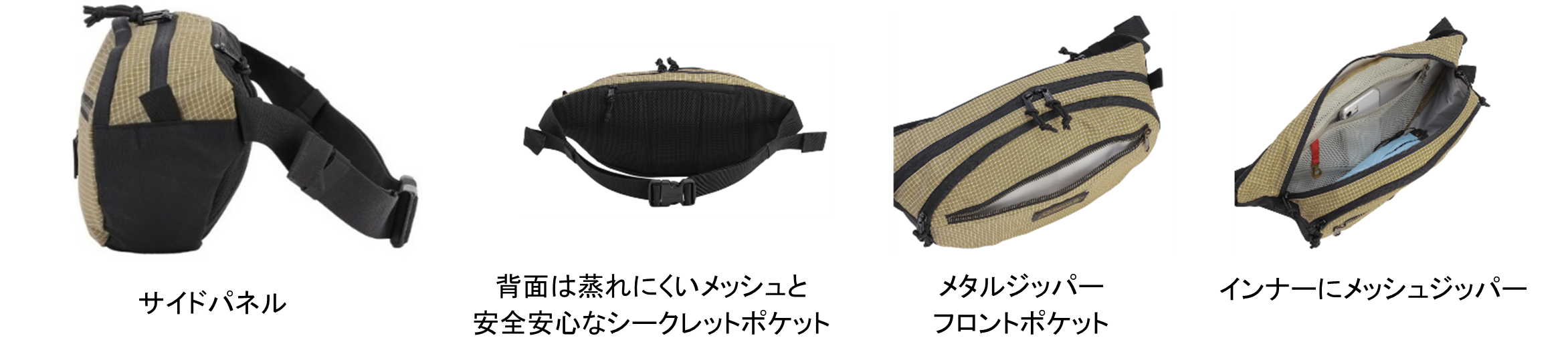「ウォーカーウエスト5」は、コンパクトでありながら、約5Lと容量が大きく、インナーメッシュポケットなど豊富なポケットも付いている大変便利なウエストバッグです。腰回りにフィットするフォルムで、背面はメッシュで蒸れにくく、シークレットポケットもついているので旅行やちょっとした散歩などにも適しています。フロントポケットはメタルジッパーで高級感もあります。