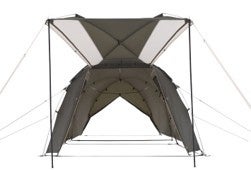 2本のキャノピーポールで支えるだけで、タープとして簡単自立。居住空間も広く感じます。