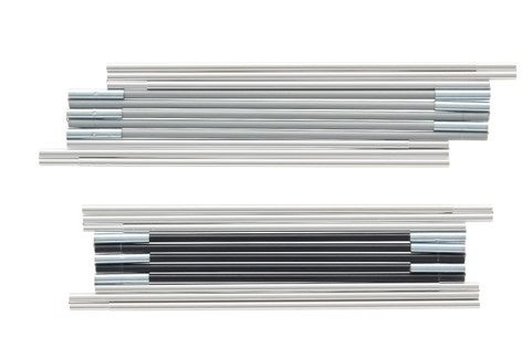 また、従来モデルからフレーム形状を見直した新型PANEL SYSTEM搭載により、居住性と耐風性が向上しました。新型PANEL SYSTEMは、クロス状に組み込んだテント前面のフレーム先端に角度を加えた構造です。従来モデル同様、フレームの筋交い構造で優れた強度を保ちつつ、フレーム先端に角度を加えることで、室内にゆとりが生まれるほか、風に強い安定した構造を実現しています。付属の2本のポールで支えるだけでテントと一体化したタープとなり、新型PANEL SYSTEM搭載で頂点が入り口側に来る構造のため、天井の高い部分が拡張し、開放感溢れる居住空間が楽しめます。そのほか、従来モデル同様、湾曲したキャノピーによる雨だまりの防止や業界初の機能となるクロス部分へのランタンの吊り下げも可能です。さらに、標準装備の車体連結用ジョイントを使用することで、テントと車がリンクでき、プライベート空間の拡張も簡単です。