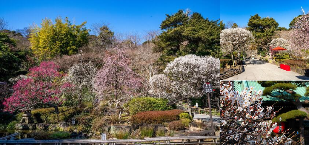 当ホテルから江ノ電やバスで約15分の距離に位置する長谷寺は、2月末にかけて、境内の各所で9種類もの梅の花が咲き誇り、見頃を迎えます。開花時期に合わせ、日没後には「梅のライトアップ」が開催。夜の静寂の中に浮かび上がる幻想的な梅の花々は、日中とは一線を画す厳かな美しさで訪れる人々を魅了します。