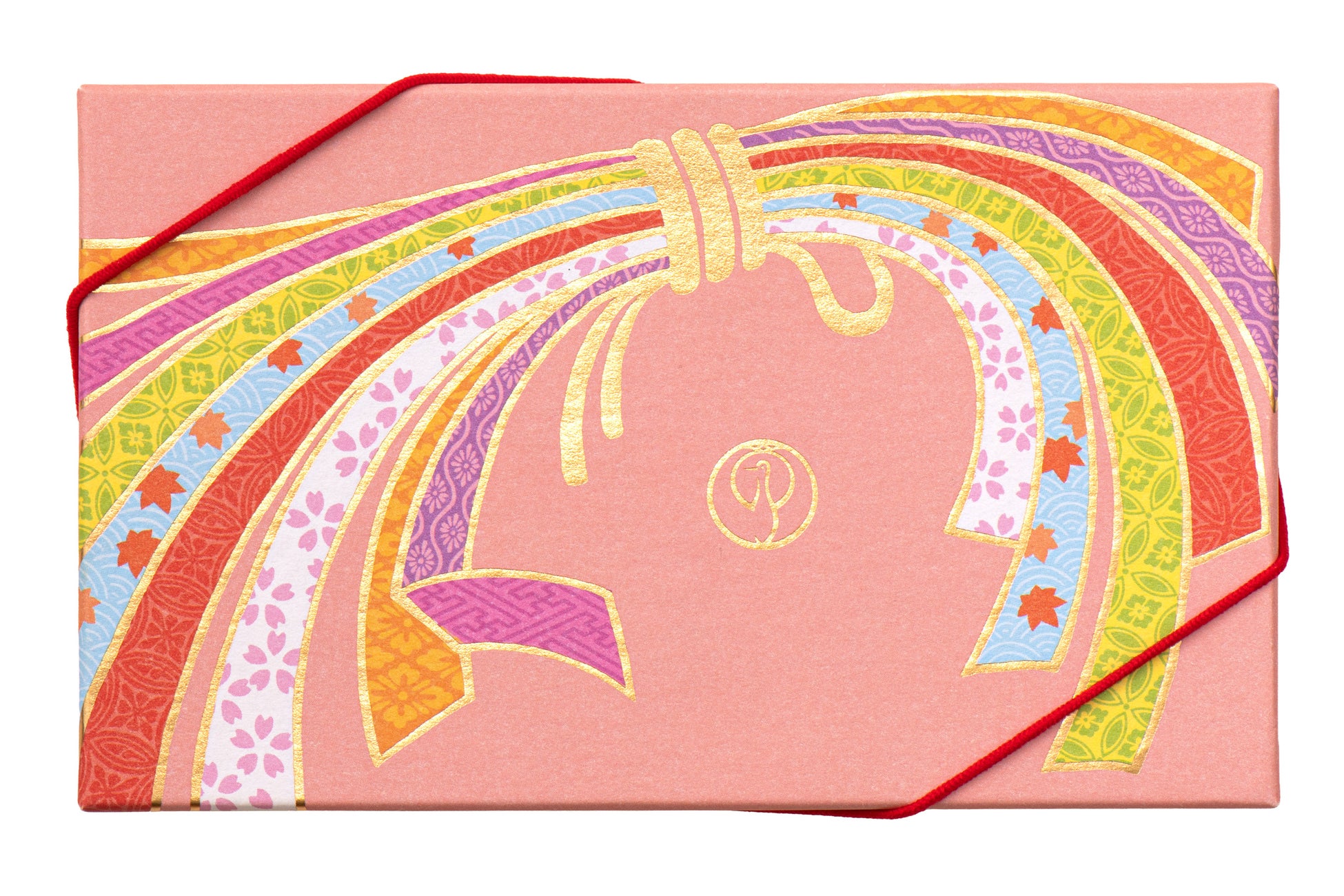 あたたかく落ち着いた桃色は、日本の伝統色「朱鷺色(ときいろ)」から。伝統工芸・京友禅をイメージし、着物の柄に古くから愛されてきた吉祥文様である「束ね熨斗(たばねのし)」をあしらいました。それぞれの熨斗には和の伝統文様、桜・紅葉の春秋模様を細かく描き、金の箔押しで上品に仕上げています。