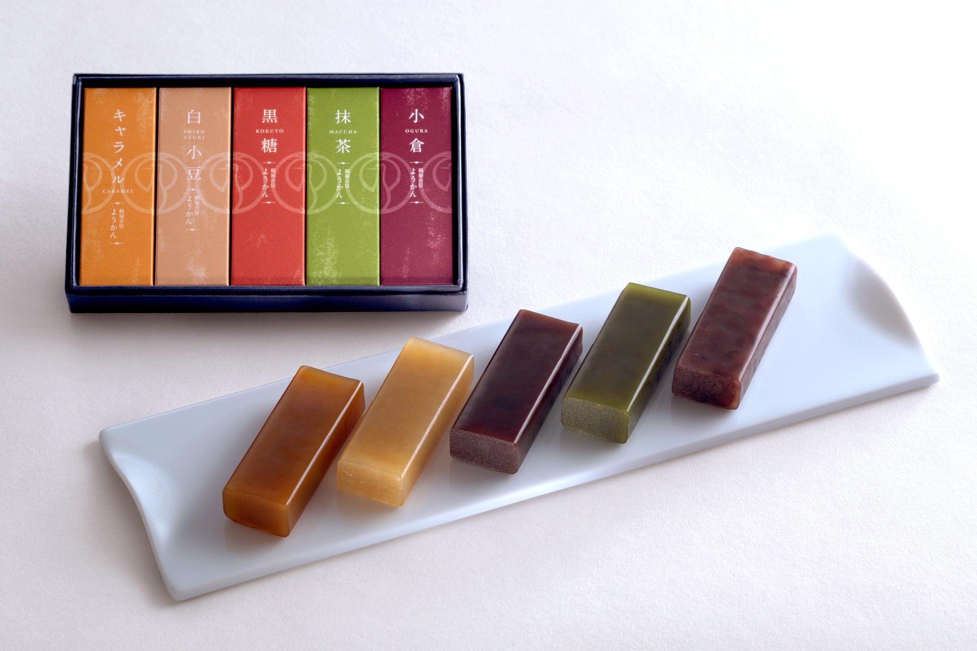 鶴屋吉信の精神「ヨキモノを創る」を手のひらサイズのお菓子に。素材にこだわる5種の風味をこめた、お手軽にお召し上がりいただける小型の羊羹です。「新しい時代の羊羹の楽しみ方として広く親しんでいただきたい」という想いを込めて、商品名に屋号を冠しました。