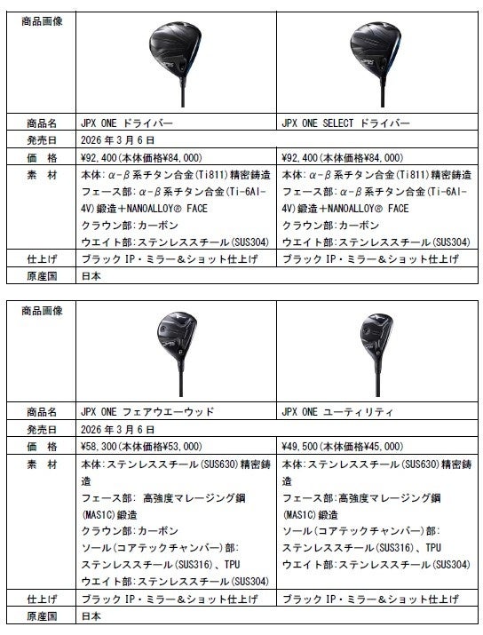今回発売する「JPX ONE」シリーズは、『NANOALLOY®フェース』の高初速性能をベースに、高い慣性モーメントと広い高反発エリアによる“やさしさ”を追求した「JPX ONE」と、体積はそのままでヘッドサイズが小さく見えるような設計により “操作性”を両立した「JPX ONE SELECT」の2機種をラインナップしています。