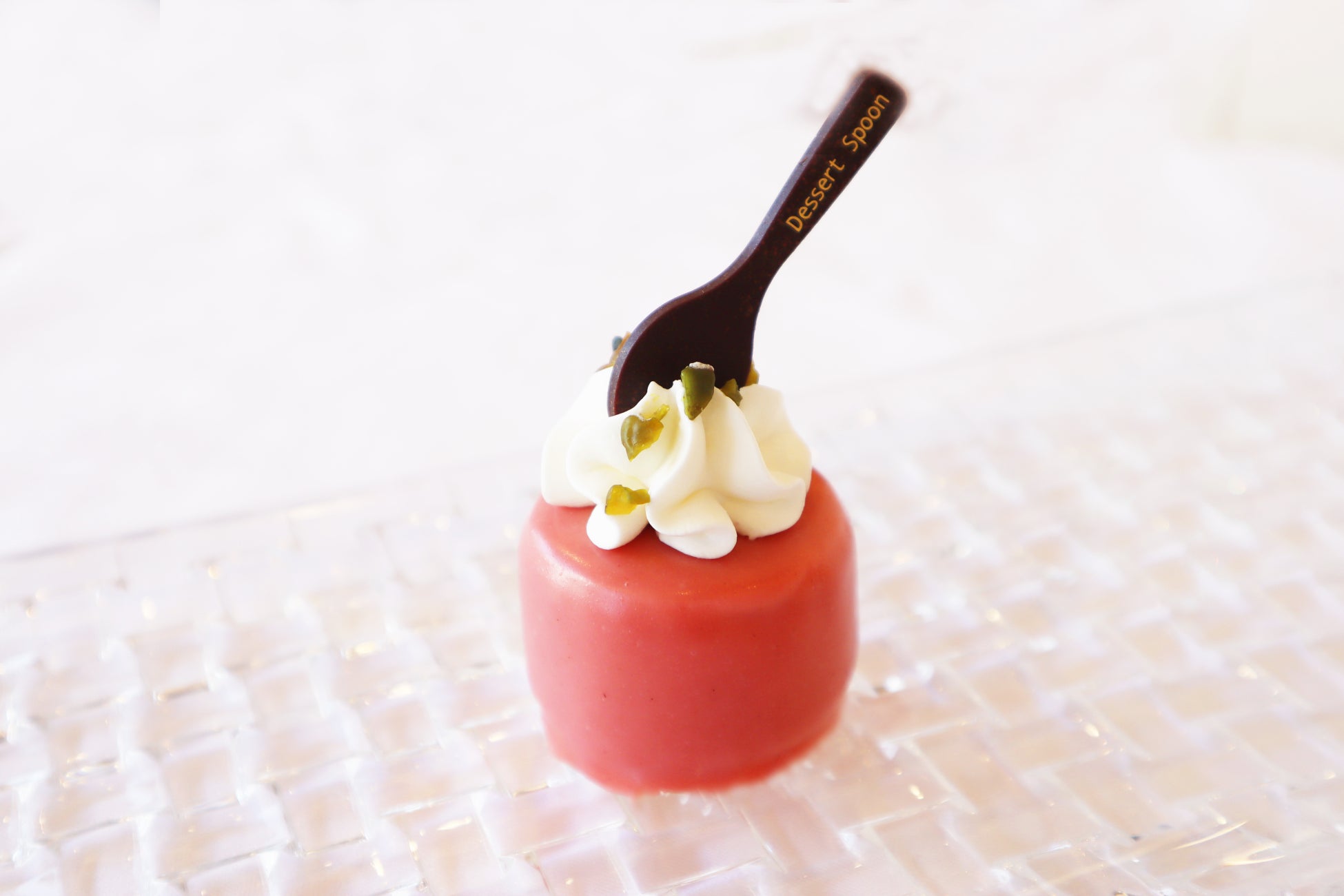 甘酸っぱい苺とフランボワーズのムースがふんわりと口の中で広がり、中にピスタチオムースが隠れています。