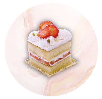 口当たりの軽い生クリームが苺の酸味と甘味を引き立たせる、しっとりとした生地のケーキです。