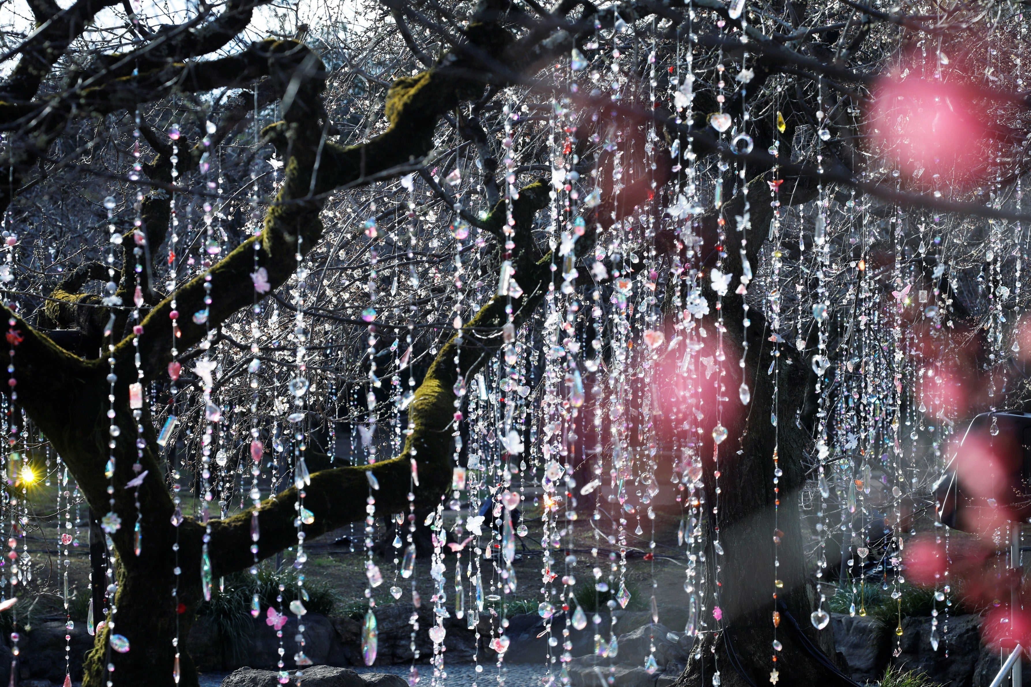 《光と花の庭》については、「約1,200本のクリスタルは、すべて手作りで、私が一本一本並び順までデザインして思いを込めた展示。私たちの作品としては珍しく、屋外の自然光の中で展開する作品であり、刻々と変わる空の色や光を受けたクリスタルの表情の変化や、梅のつぼみがどんどんと花開いていく、『季節のうつろい』を体感できるのもテーマの一つ。自然とアートが融合し、響き合う瞬間を楽しんでいただきたい。」と本プロジェクトに対しての想いをコメントしました。