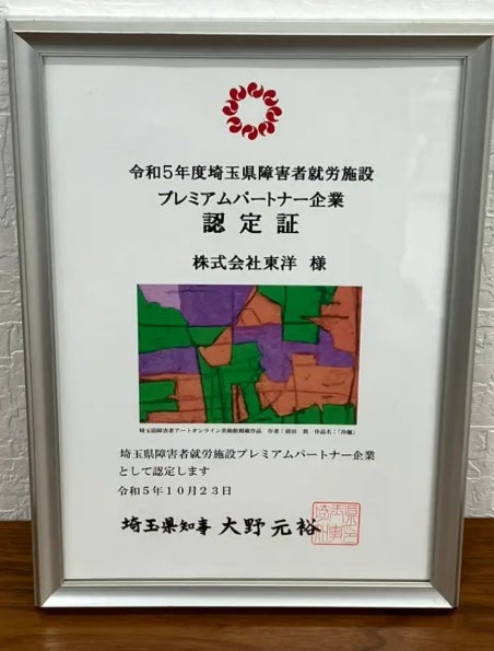 また令和5年10月23日には「令和5年度 埼玉県障害者就労支援施設プレミアムパートナー」に認定されました。