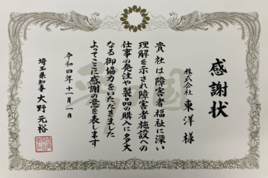 ■「埼玉県障害者就労支援施設プレミアムパートナー企業」「障害者就労施設応援企業」認定について